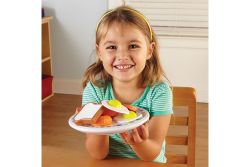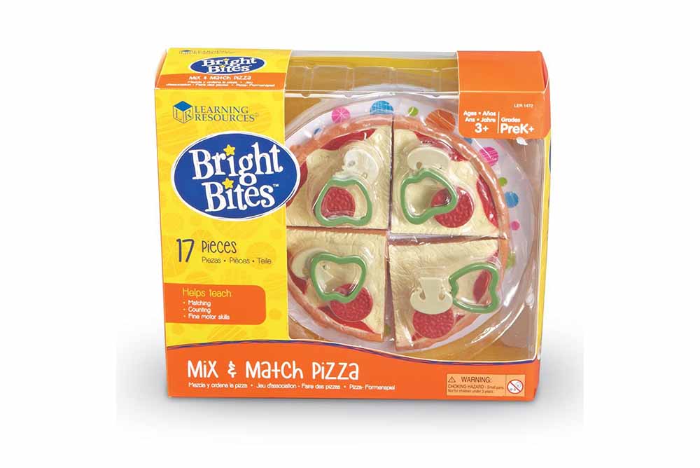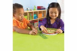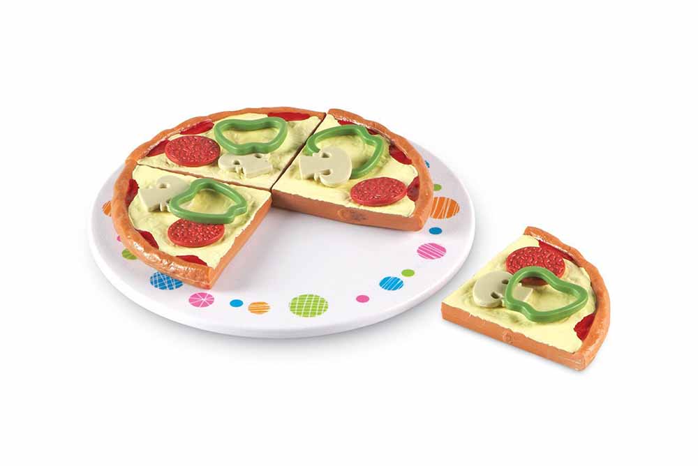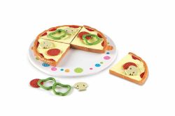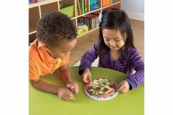 上方放綠蔬菜,其他小朋友要排出一模一樣的pizza造型。