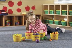 學習觀察、比較、分類、計數的基礎概念,例如:黃顏色水果是哪些?共有幾件?