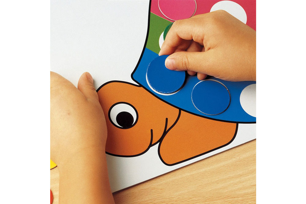 讓孩子開始從1數到6的簡單遊戲,藉由搭配骰子完成磁板的圖案,訓練孩子的數數與顏色的認知能力。