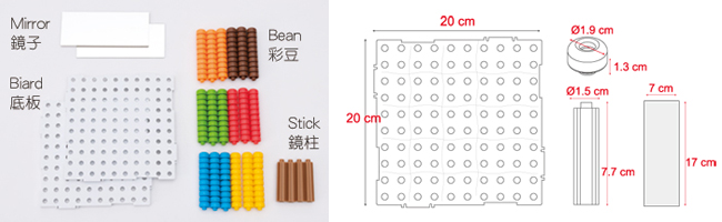 4. 彩豆搭配鏡子,可觀察多面向及對稱部分變化。
