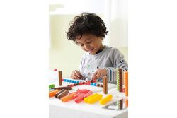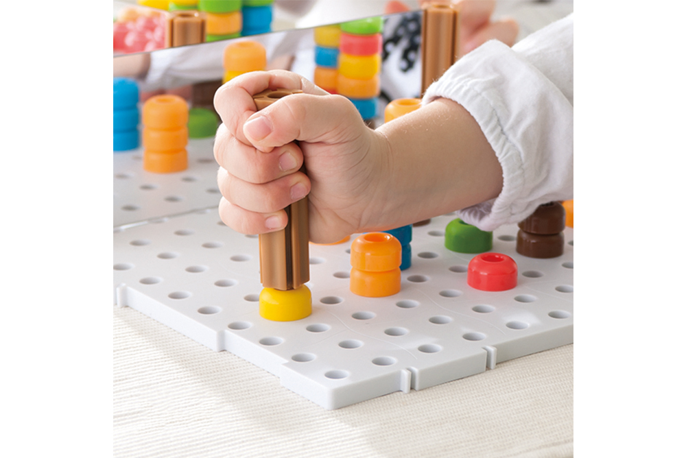 3. 用鏡柱對準彩豆,卡住後可拔除彩豆,訓練幼兒手部肌力。