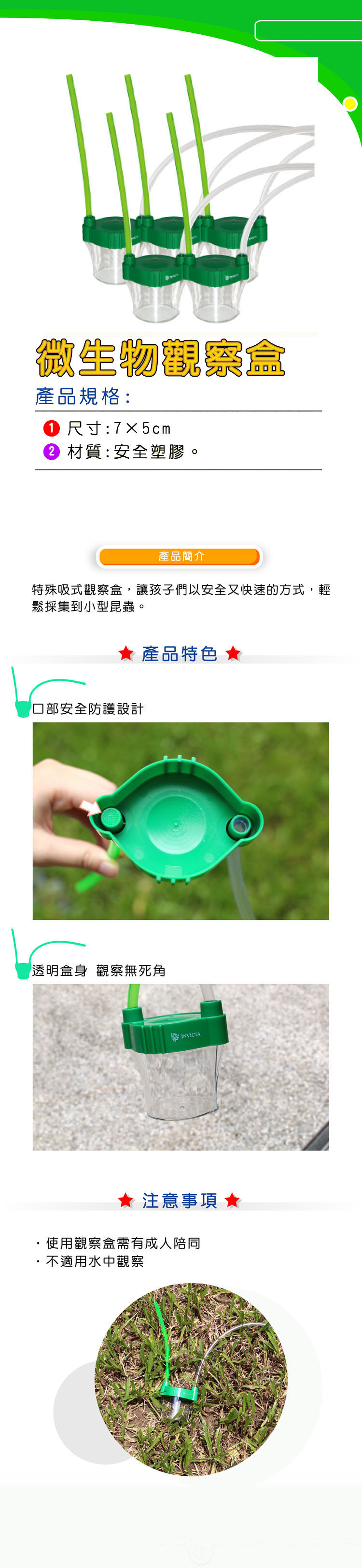 特殊吸式觀察盒,小朋友以嘴吸入細小微生物到觀察盒中,特殊安全設計不用擔心會吸到小朋友嘴中。