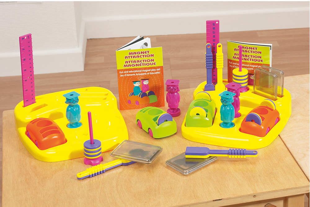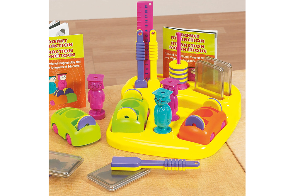 有大磁棒、磁力車和量尺,學習磁力的互吸互斥作用以及磁力的運用。
