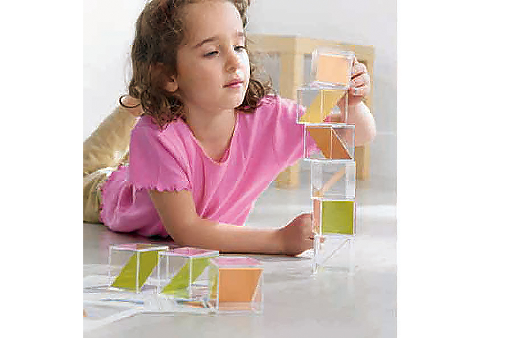 1. 藏著雙面色卡的透明積木,帶給孩子豐富多元的視覺變換遊戲。