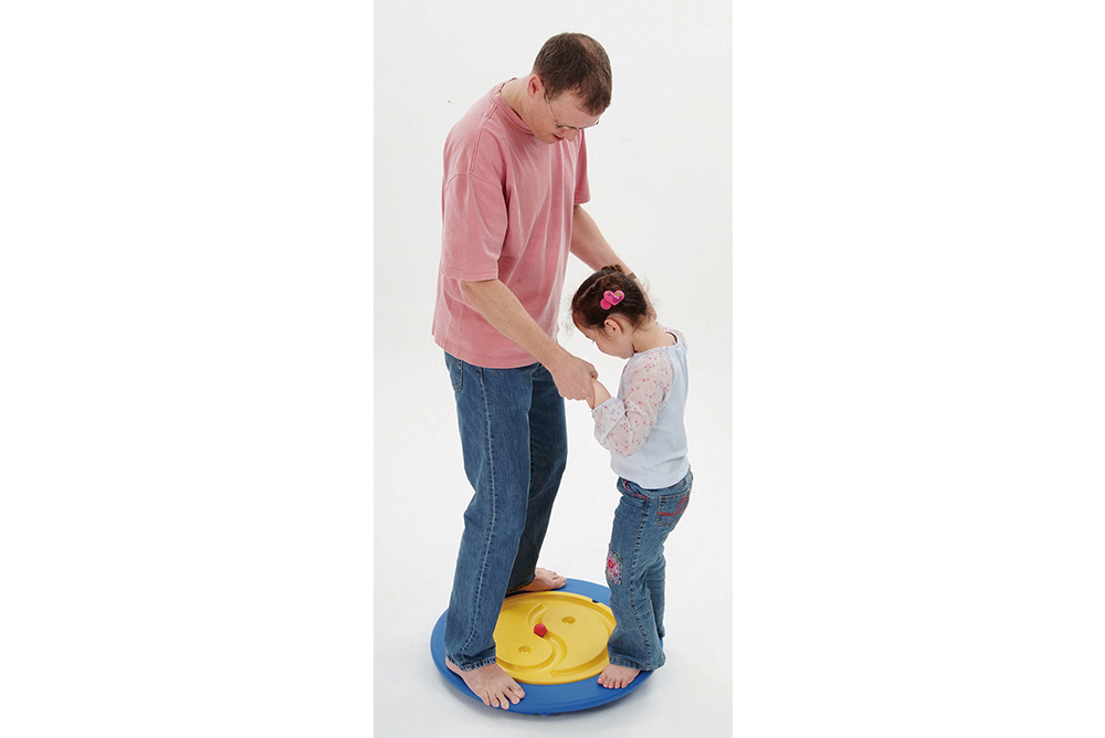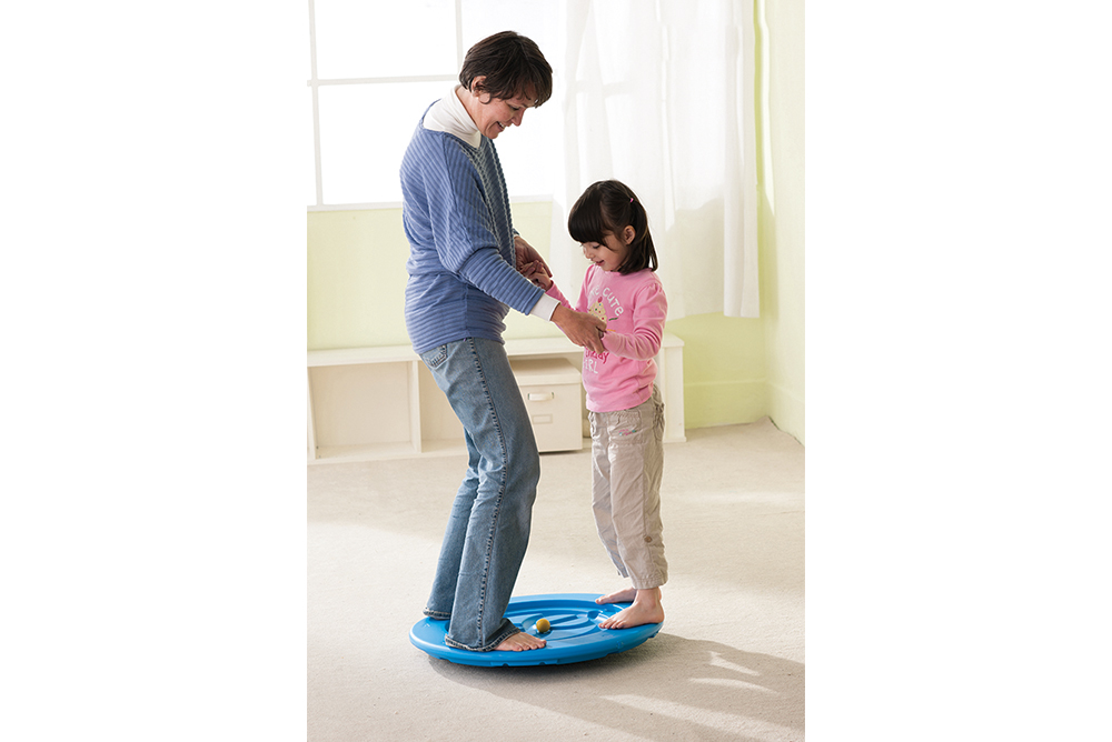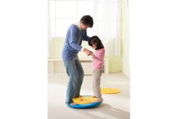 2. 可雙人站於板上,共同在有圖形軌道上運轉球。