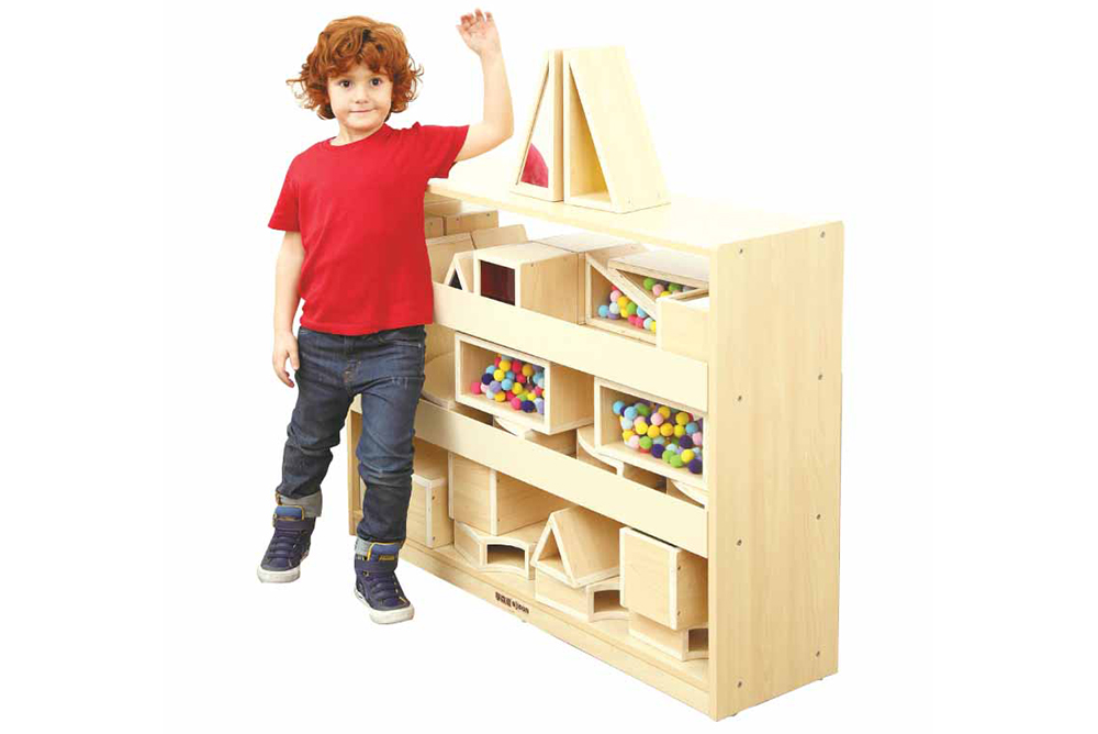 ● 解決園所積木收納難題 集收納、展示於一體