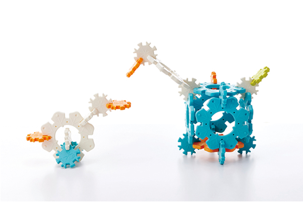 2. 車輪狀的小型雪花積木,多變的鑲嵌角度,組合造型變化多元。