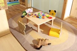 小熊造型十分可愛,顏色明亮。軟包座位, 觸感舒適,營造童真的教學環境。