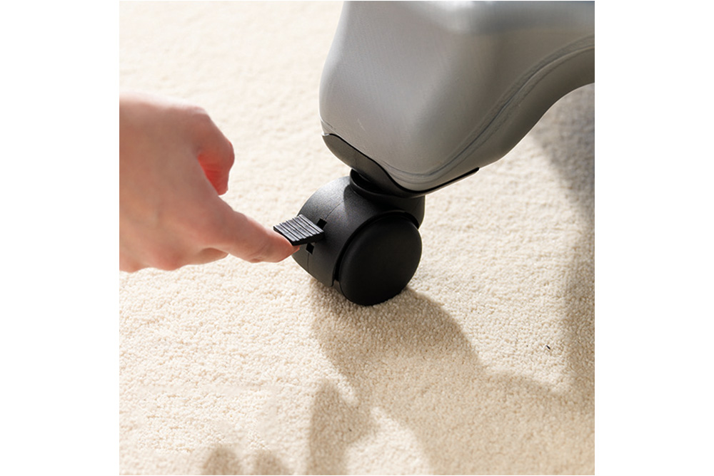 3. 椅底設有四個滑輪,推取方便且安全。輪子有煞車裝置,防止滑動。