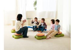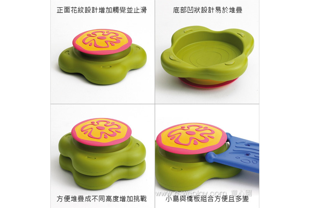 1.小島可以堆疊變化高度,給孩子不同的跨走、跳躍經驗。