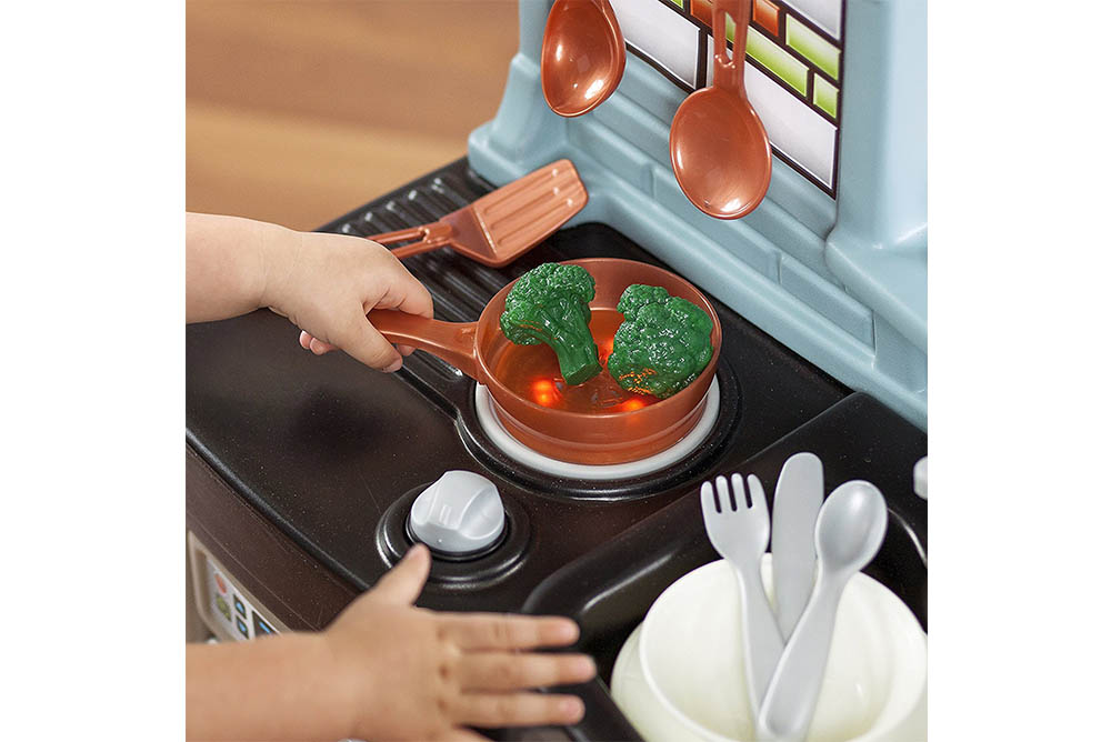 爐火燈光與聲音設計,加上烤箱、冰箱,讓孩子充分享受烹飪扮演的樂趣!