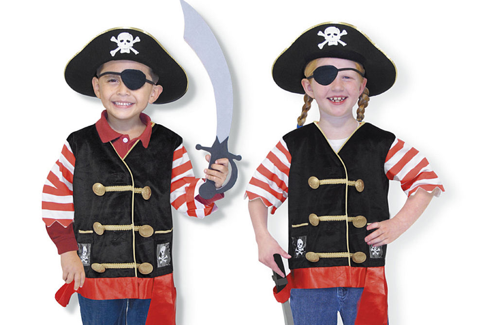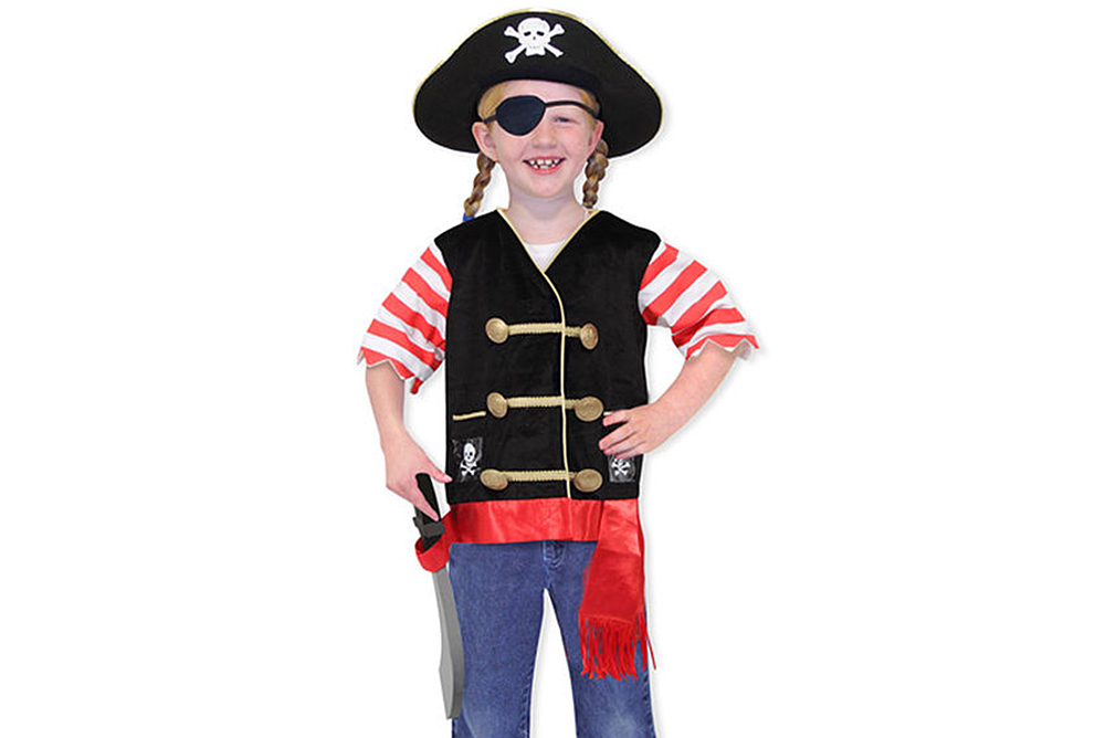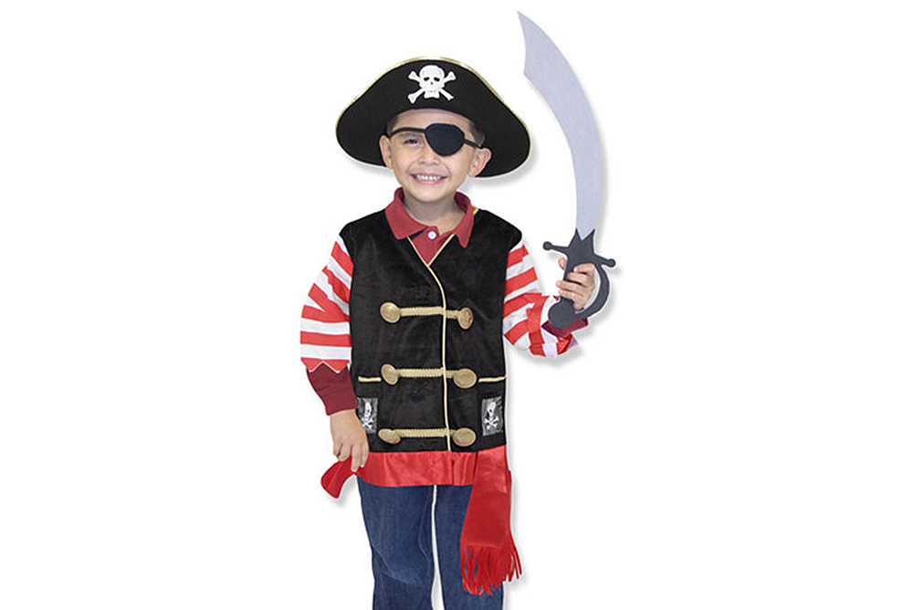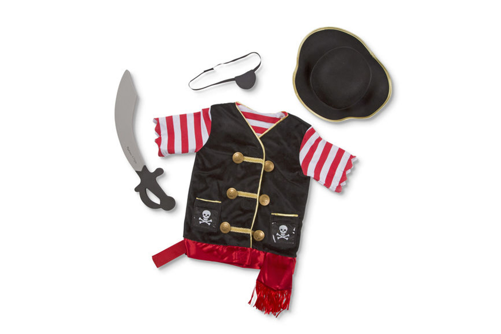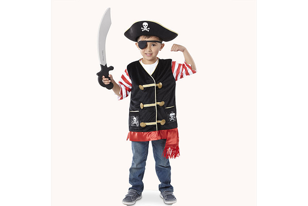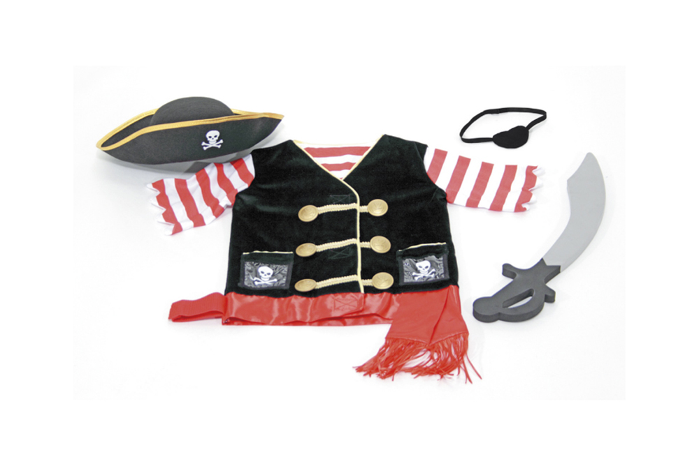 這神氣海盜扮演組包括刺繡背心、海盜帽、眼罩和軟劍。