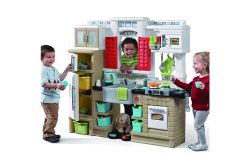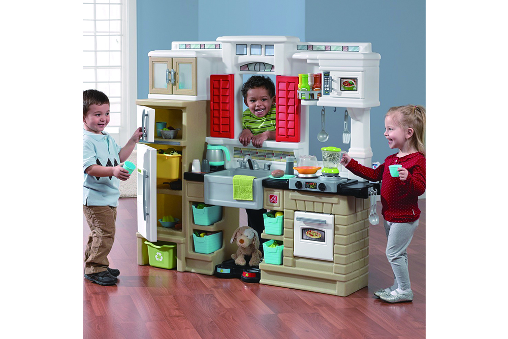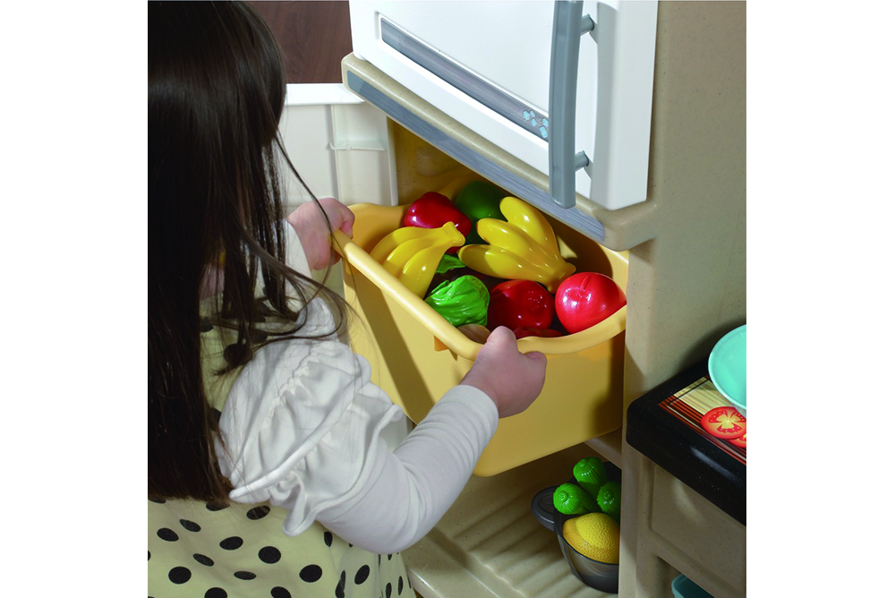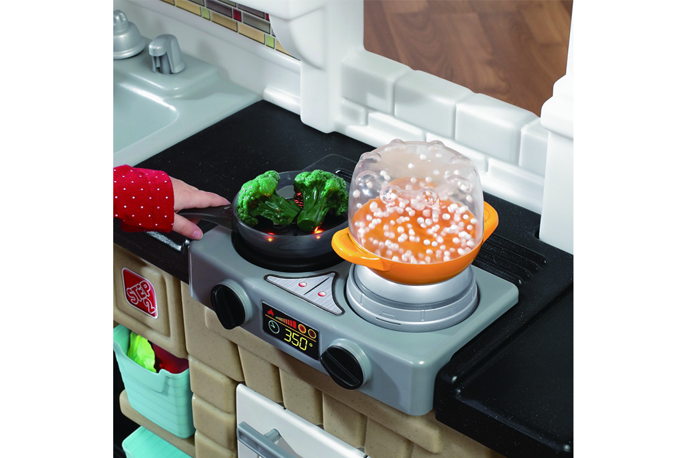 附有烤箱、瓦斯爐、冰箱、水龍頭的廚房組,加上爆米花和攪拌機,多元的扮演遊戲讓孩子欲罷不能。