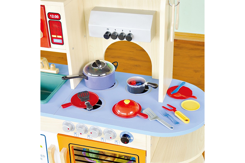 綜合烤箱、微波爐、冰箱、爐臺…等多種綜合功能的廚房,讓小小廚師一展廚藝滿足每個人的味蕾。