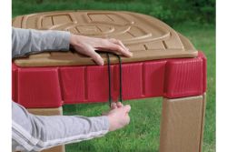 蓋子蓋上後,有固定繩扣,能和沙桌固定,避免蓋子移動。