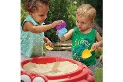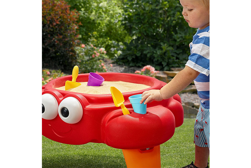 螃蟹的造型生動可愛,蓋子可以保持沙子的乾燥清潔。 螃蟹爪上小孔,可存放鏟子等小工具。