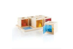 3. 木箱正上方有幾何造型開口,鼓勵孩子正確將積木配對放入木箱中。