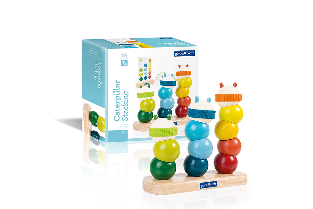 1. 特殊的斜角圓球積木,讓毛毛蟲像在蠕動般,提供有趣的感官體驗