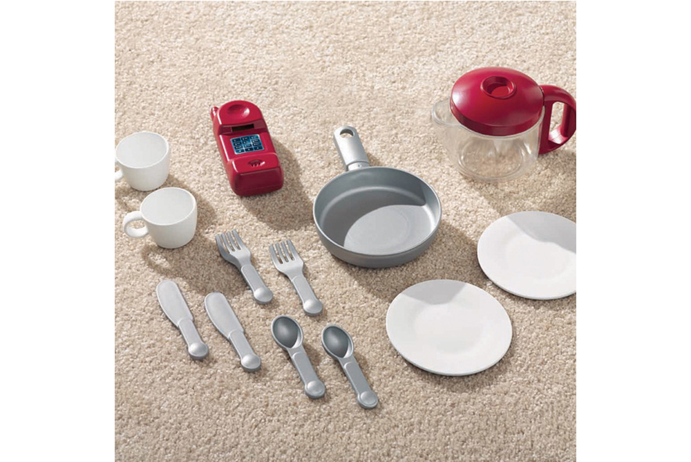 5. 含刀、叉、杯、盤、鍋、壺與電話等13個配件。