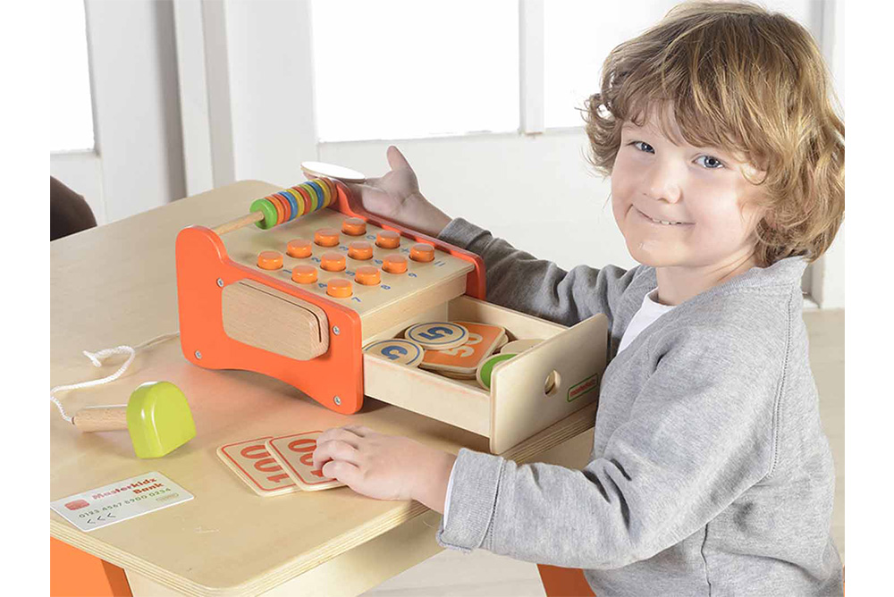 幼兒扮演收銀員這個角色時,不僅能認識錢幣數字並從中增強數字金錢概念,數數、加法、減法學習,