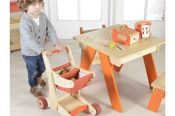 這款購物車使用俄羅斯夾板製成,堅固耐用,幼兒扮演消費者,手推購物車在超市採購物品時,