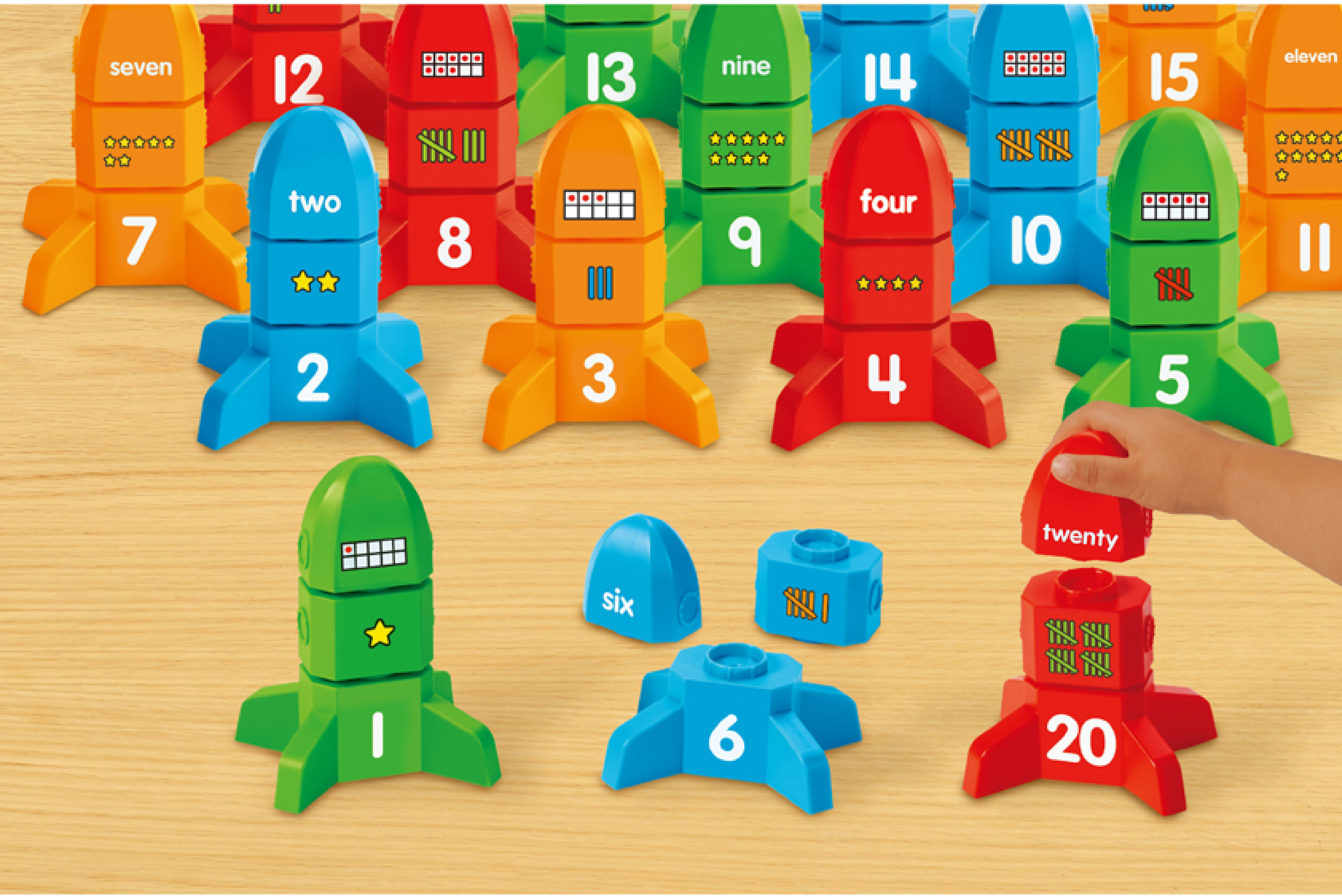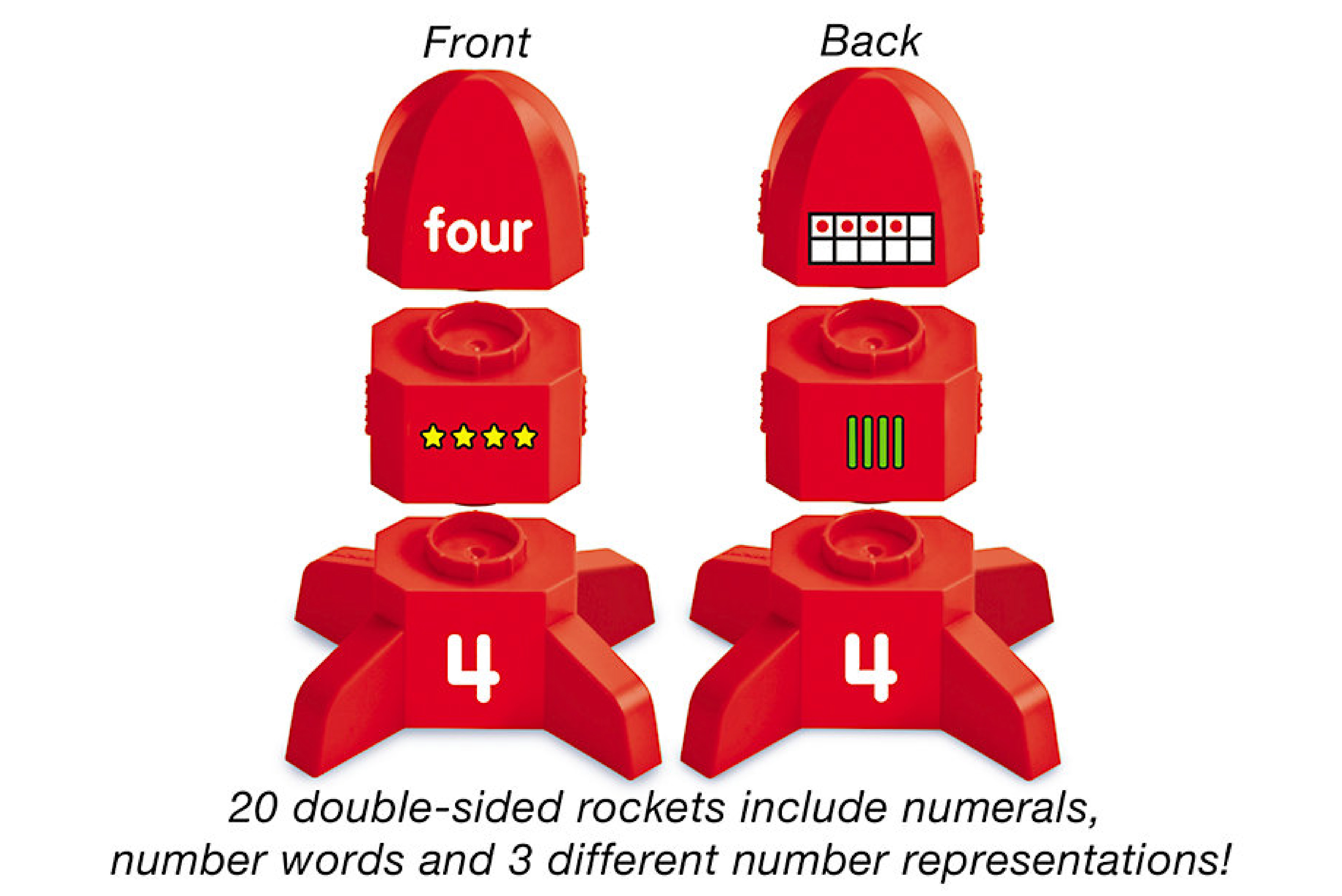 1~20數字火箭由4種顏色組成,每個火箭由3個部分組成分別顯是阿拉伯數字、英文數字、數量點數、