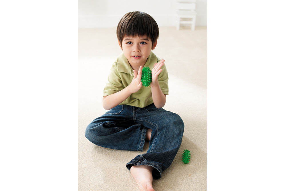 方便好握的橄欖形觸覺球,在手的鬆緊抓握之間,增進觸覺感官的良好舒展,可單手或雙手輪流進行;