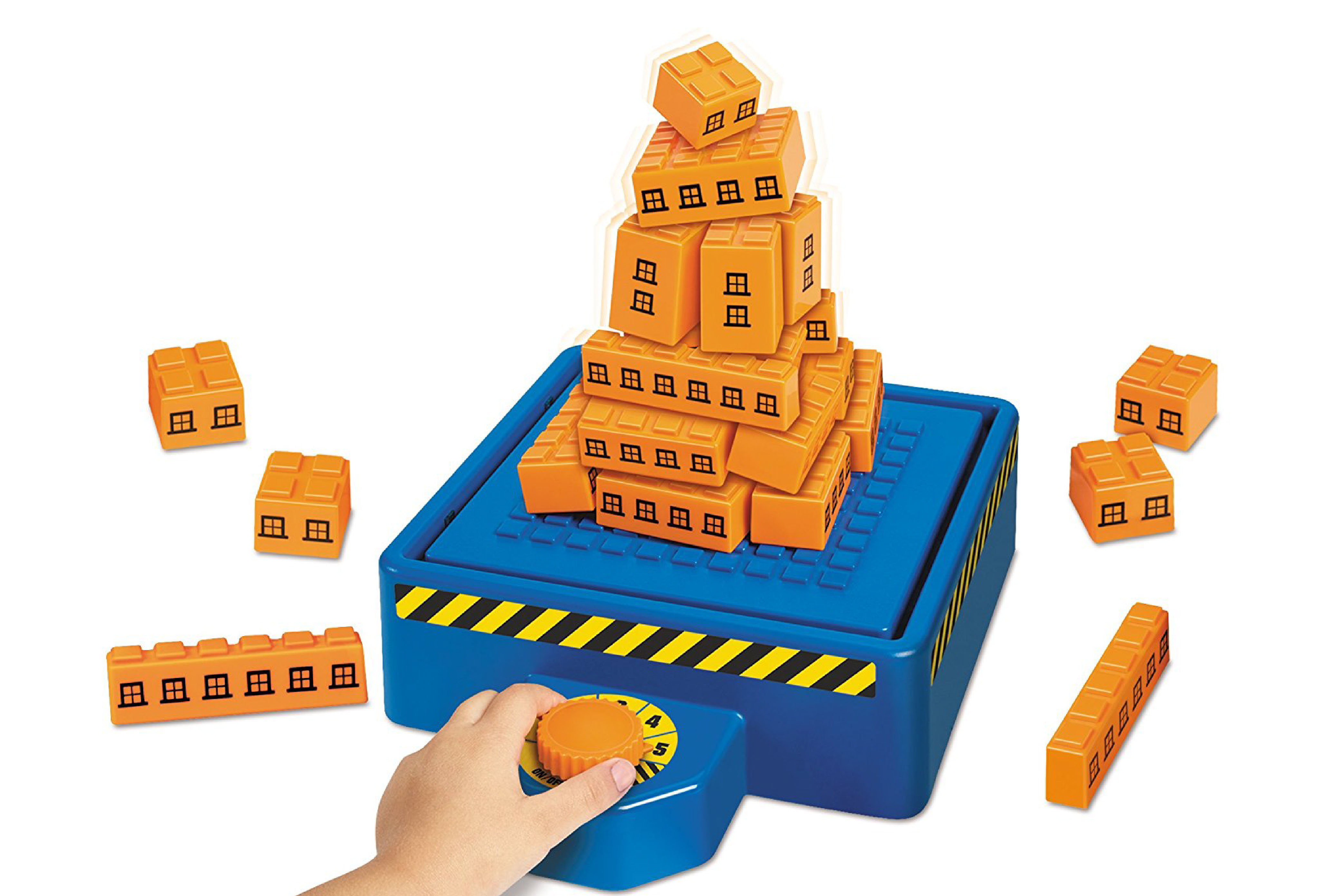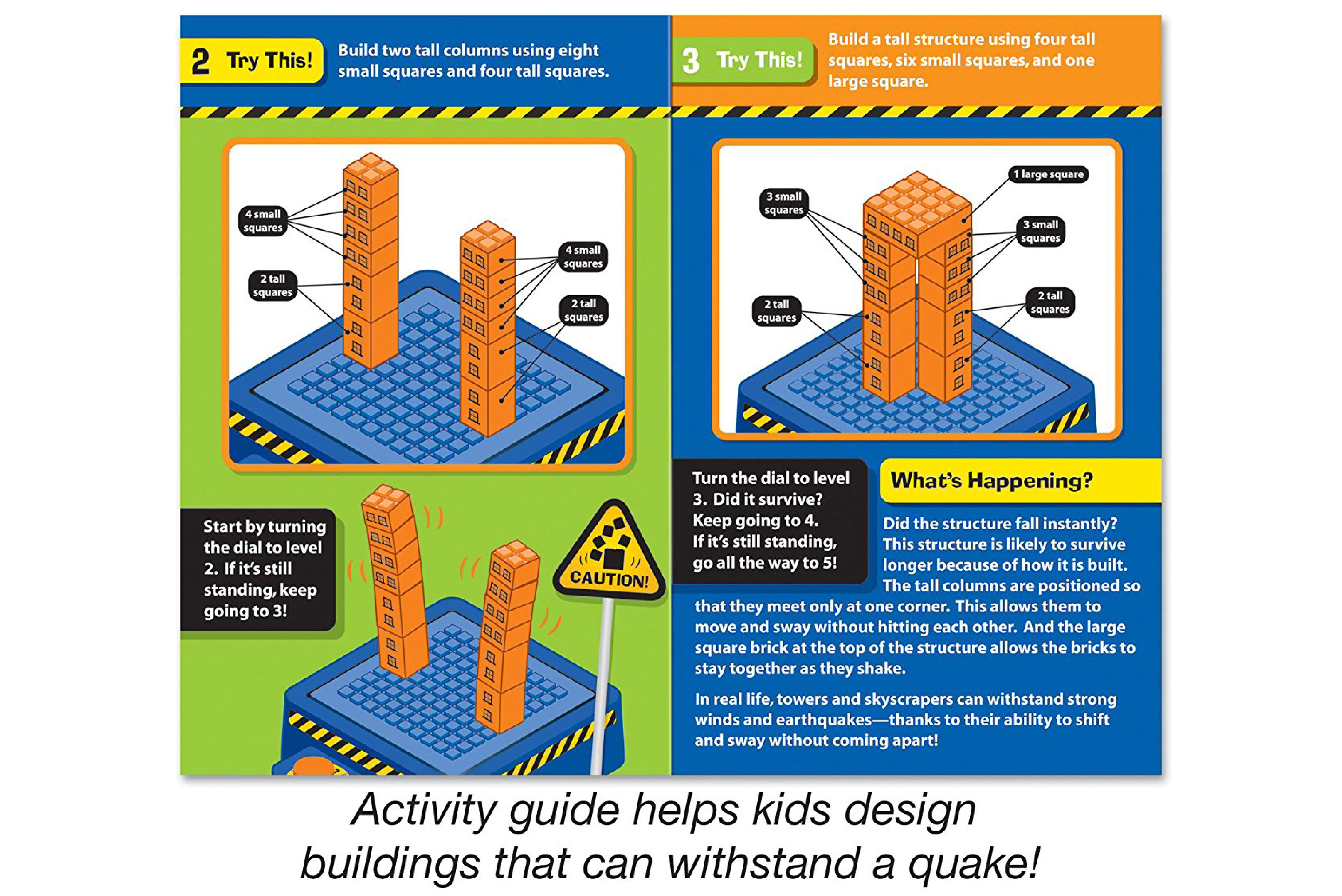 地震模擬器25cm,有5個級別的強度感受地震,並配備了30個各種形狀和大小的塑料建築磚,