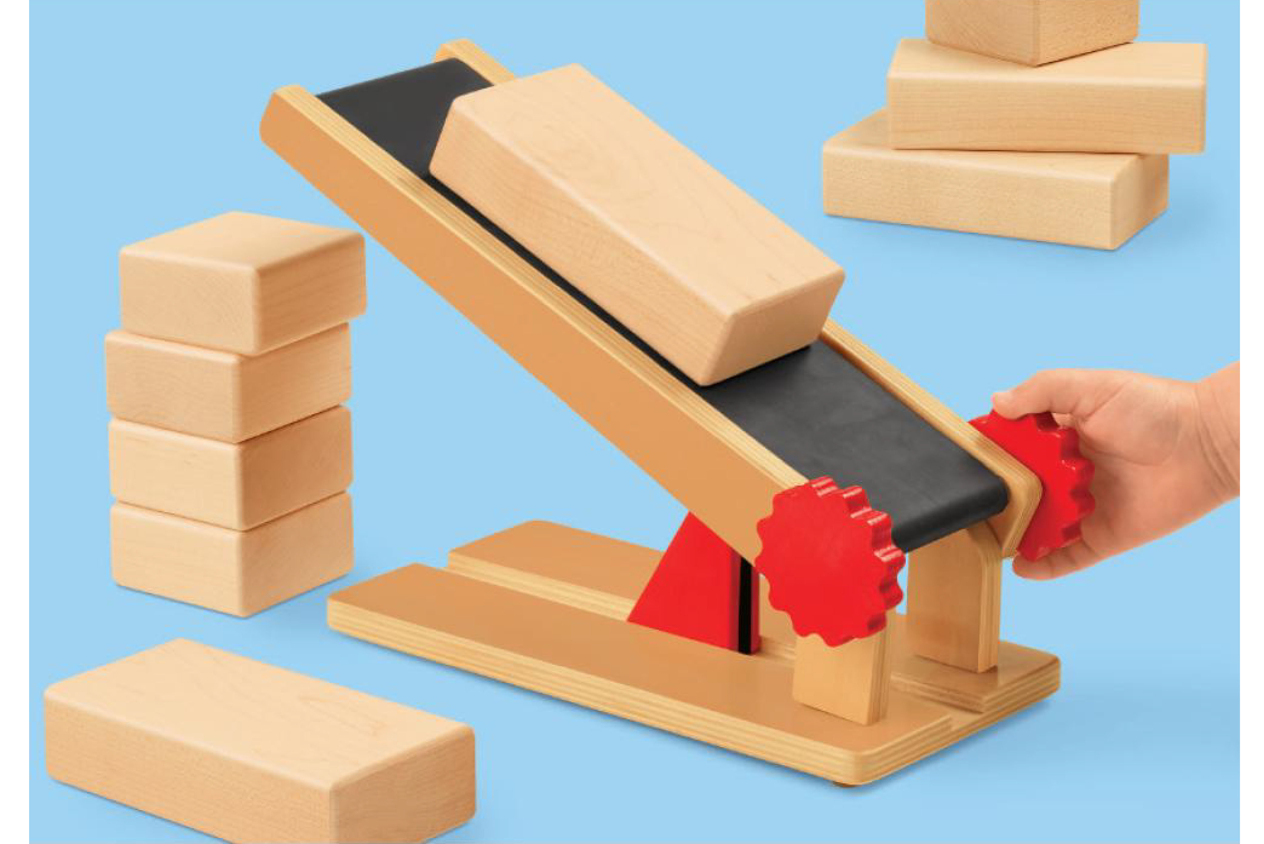 讓孩子們親自體驗因為移動傳送帶而產生的原因和影響,以確定角度的變化是否會使輸送更容易或更具挑戰性,