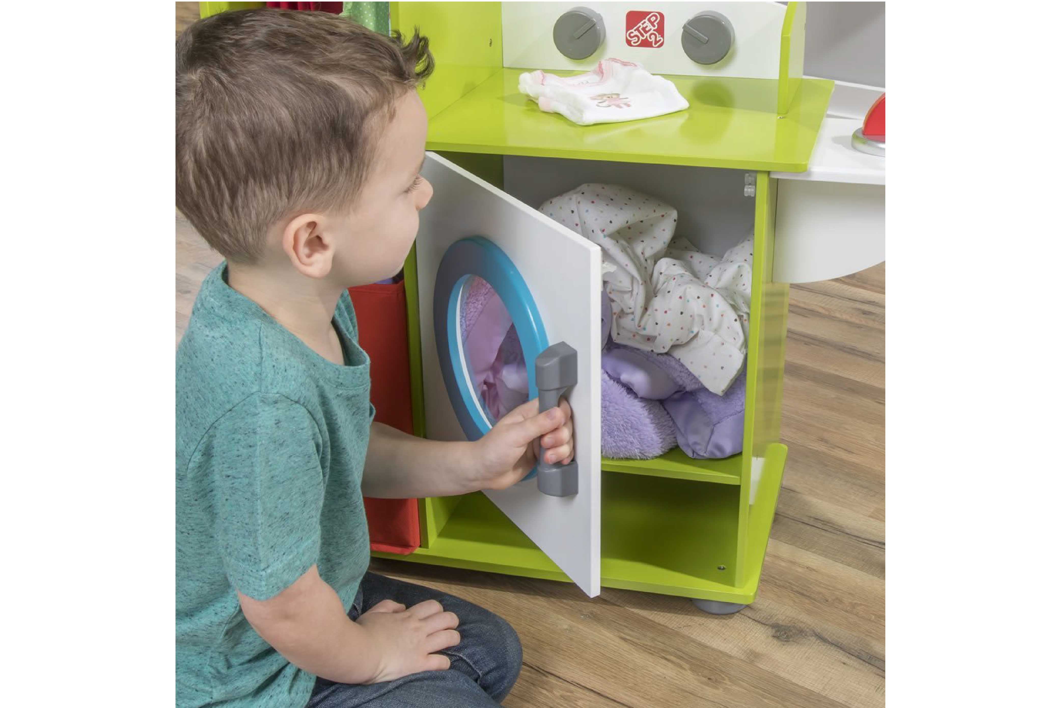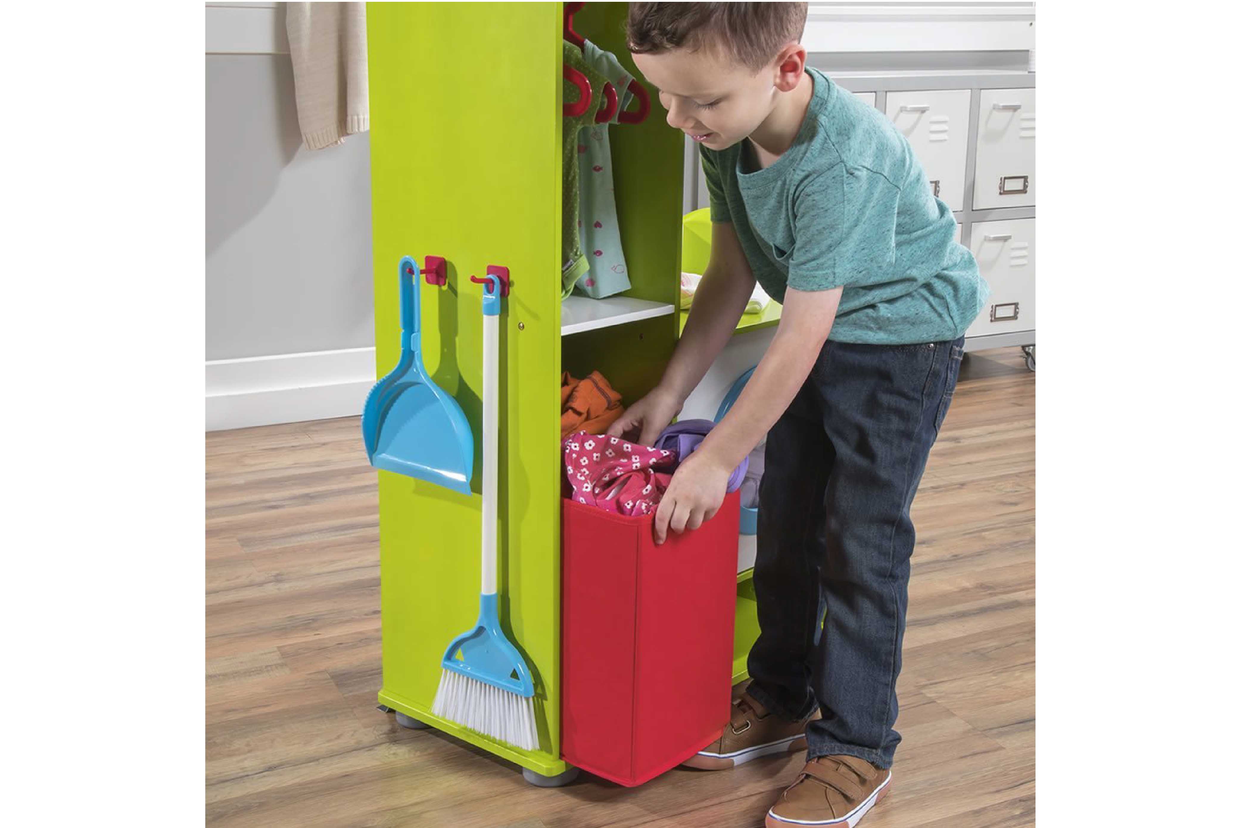 小孩子可以像爸爸媽媽一樣,拿出洗衣籃內的髒衣服,