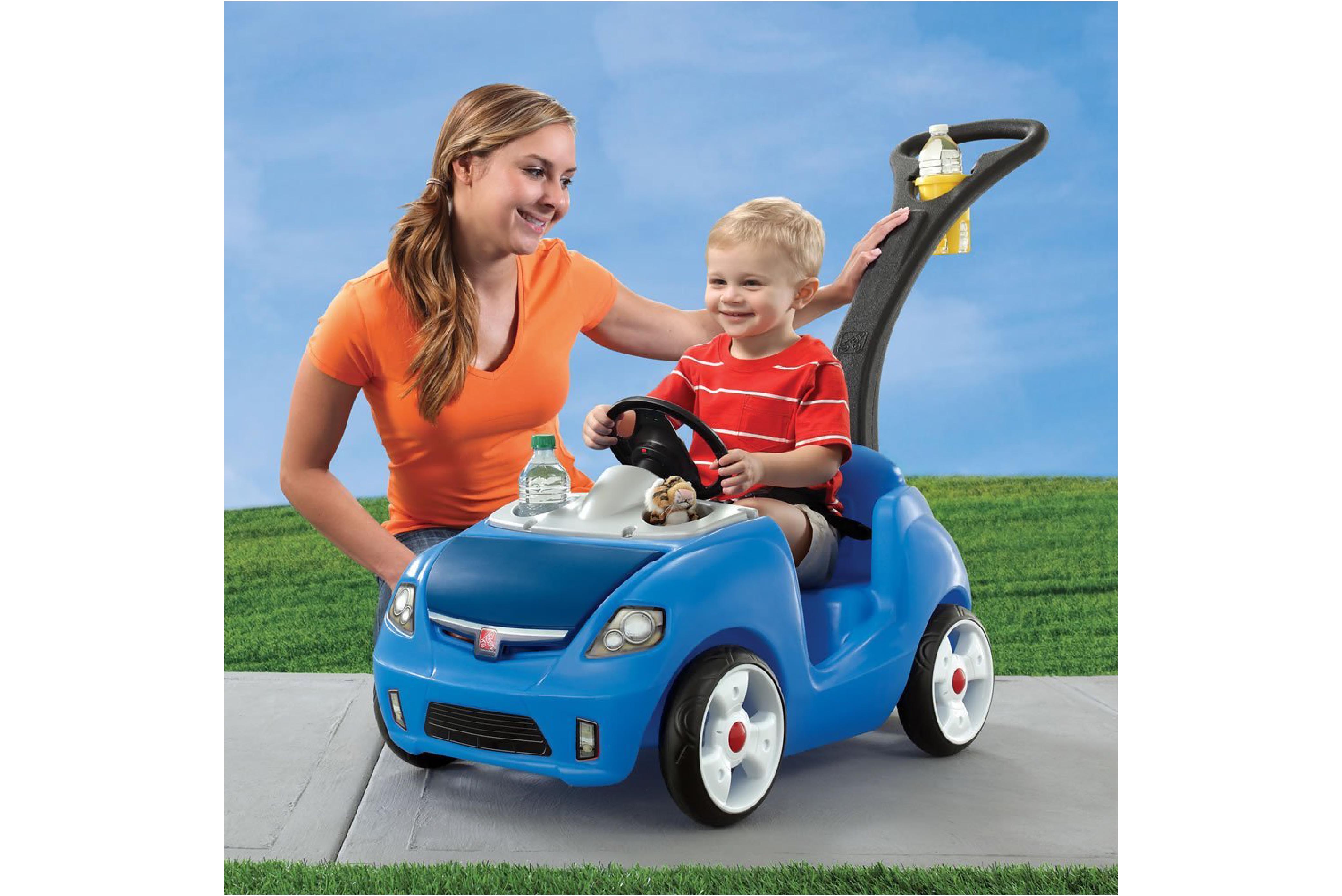 特殊弧形設計推車架,方便上下階梯時推動支撐,還有小置物箱可以帶著玩偶一起出門。