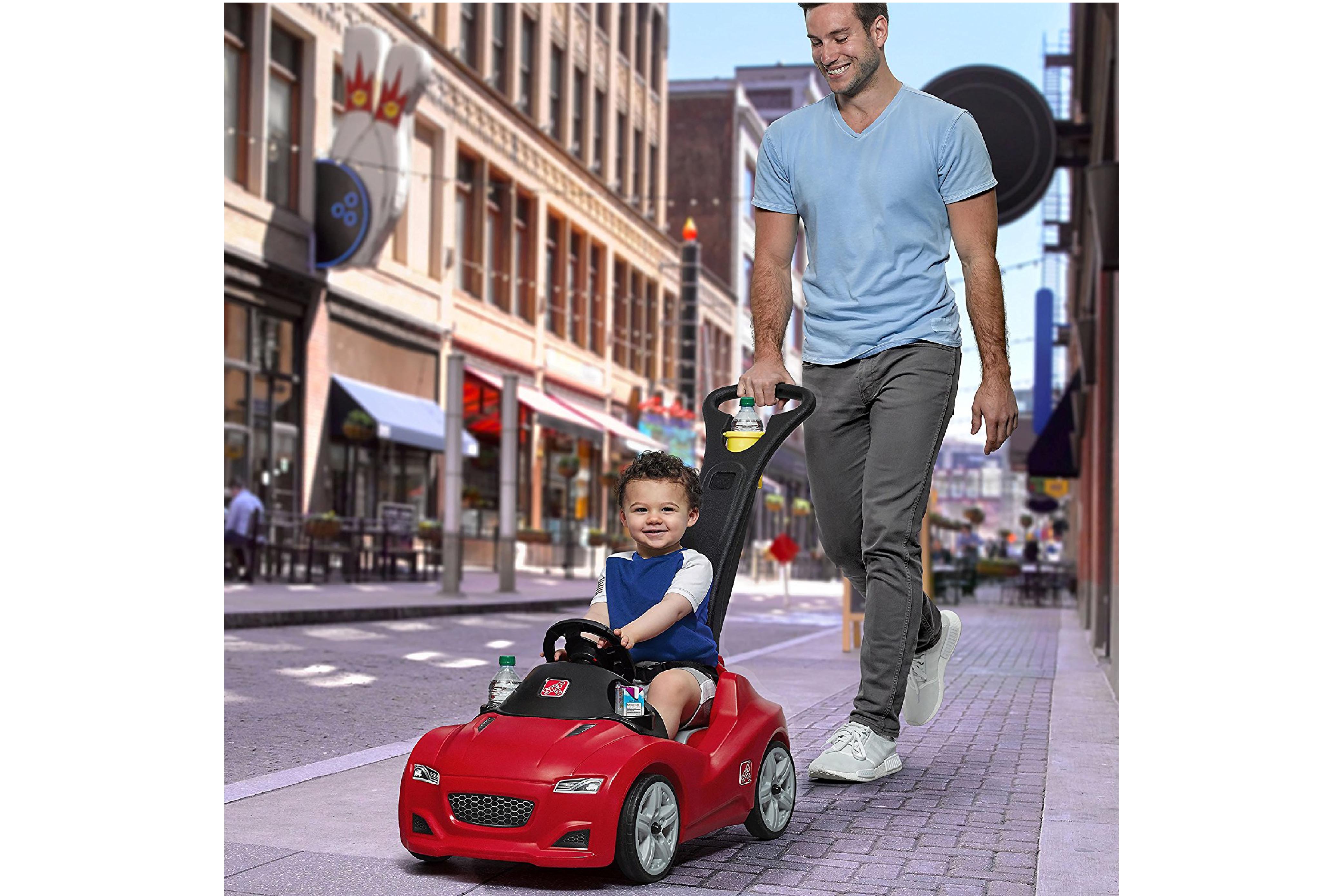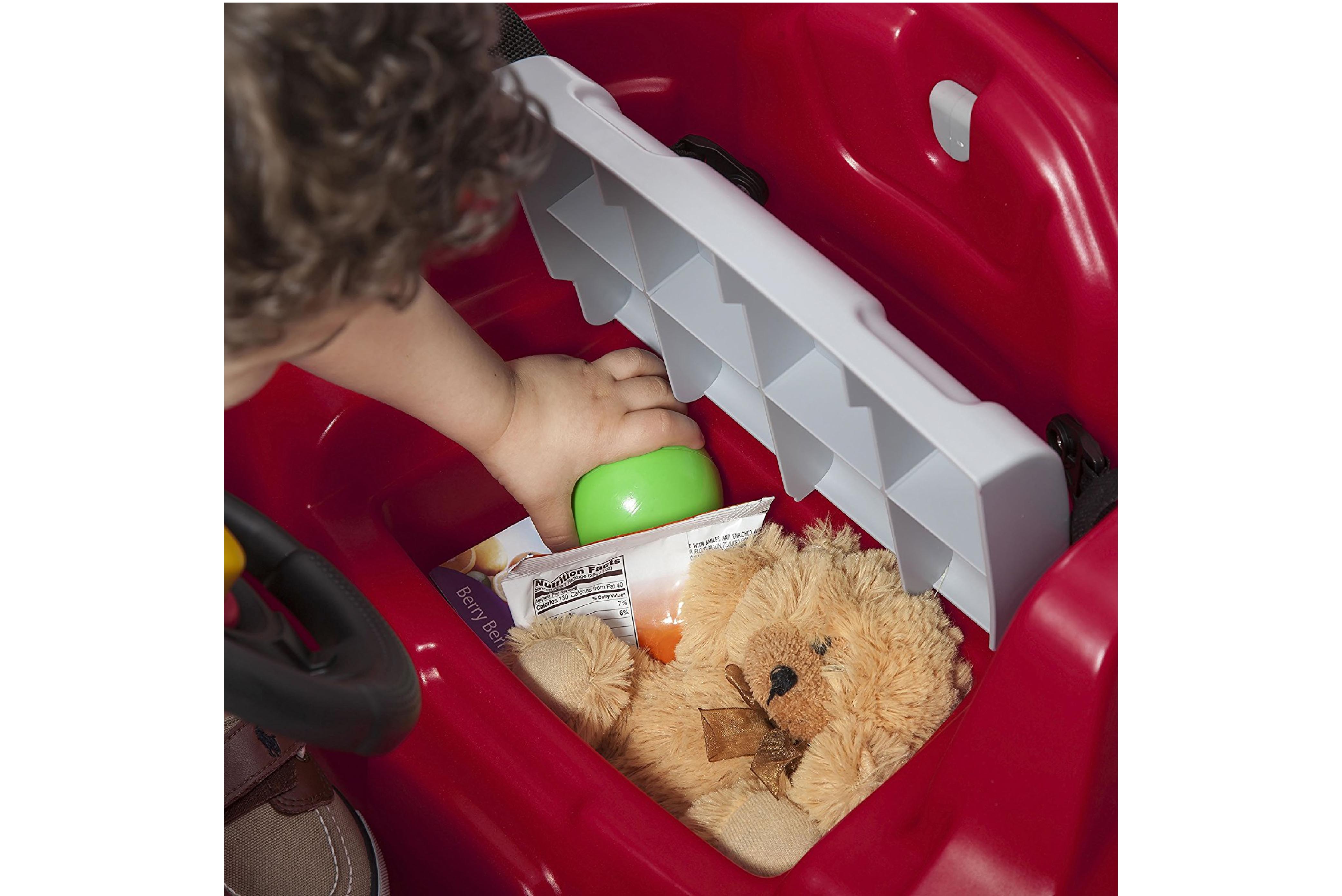 特殊弧形設計推車架,方便上下階梯時推動支撐,還有小置物箱可以帶著玩偶一起出門。