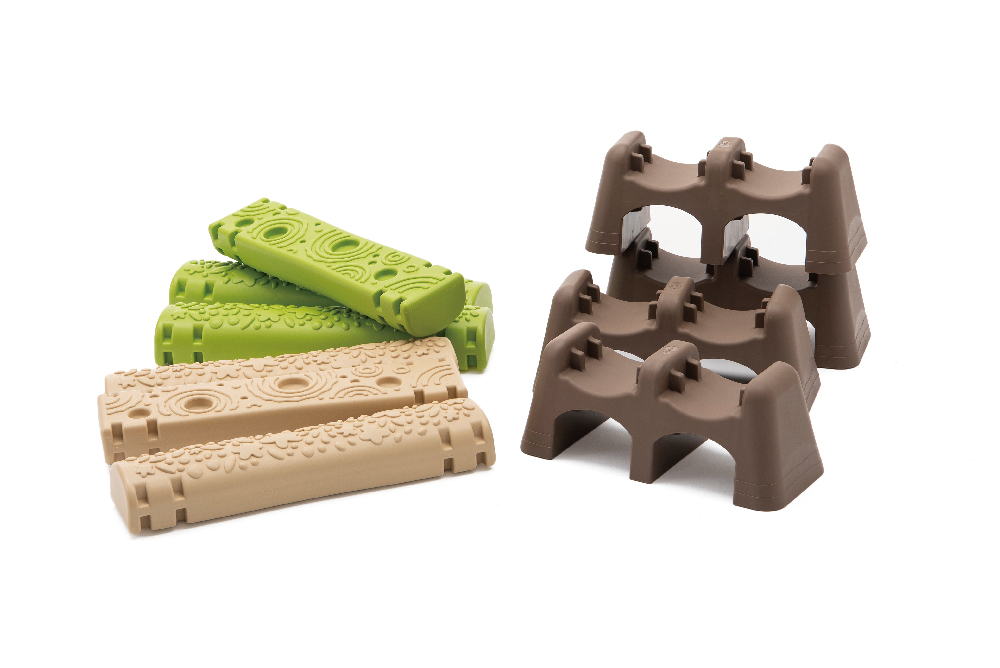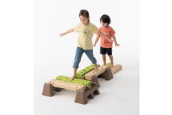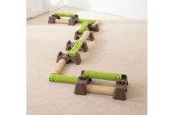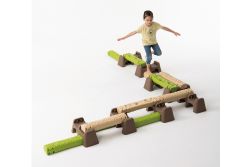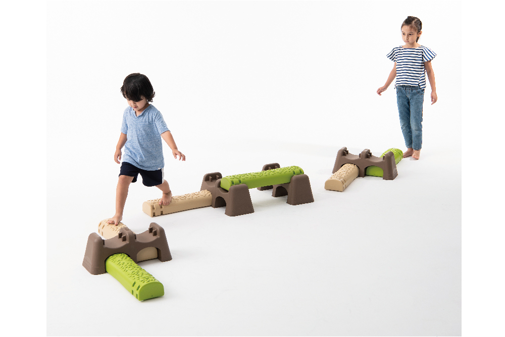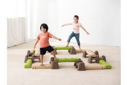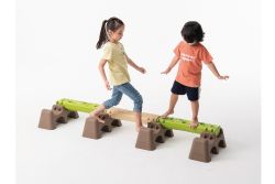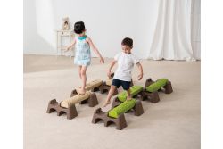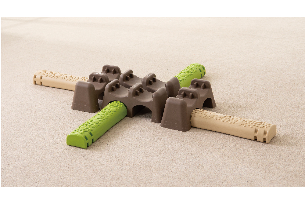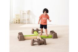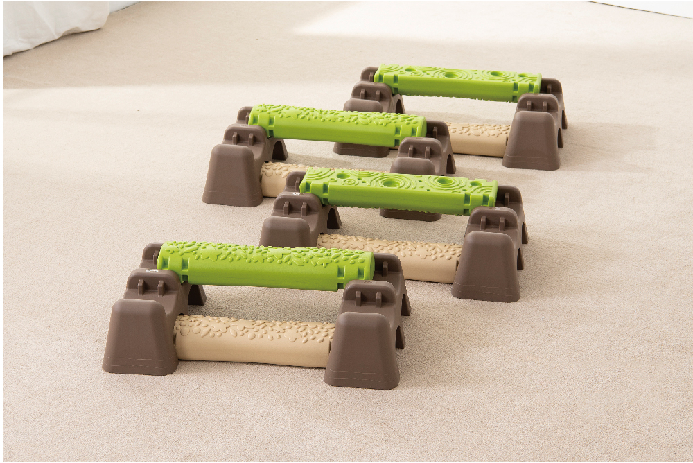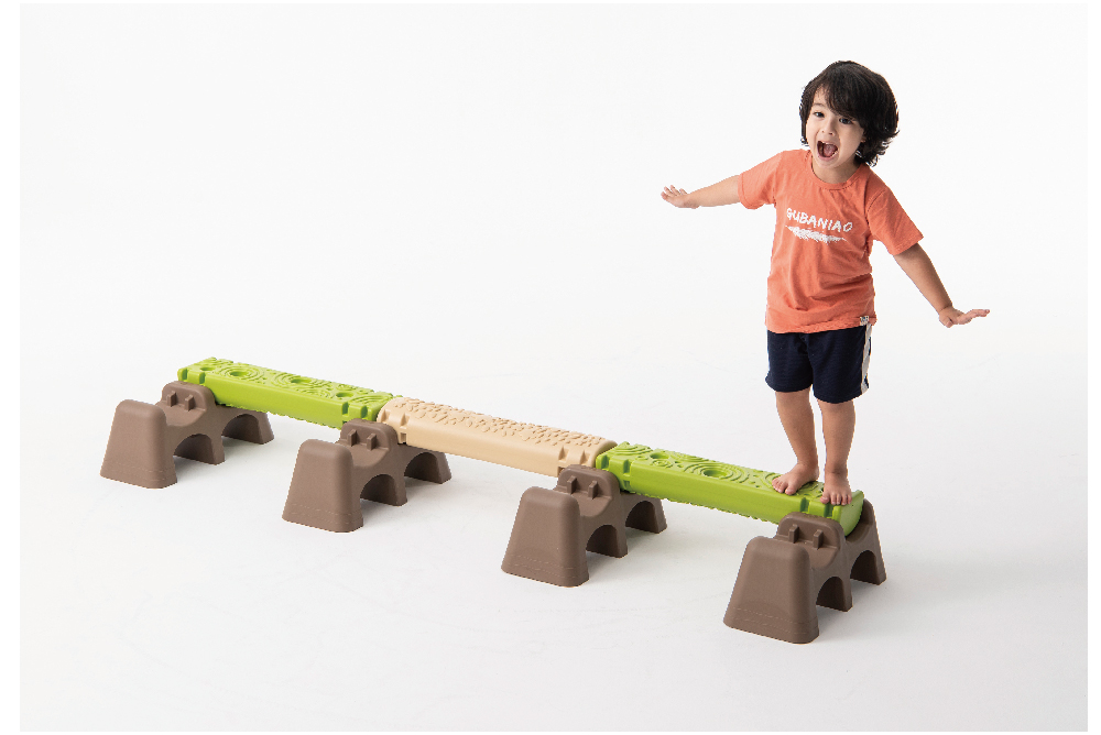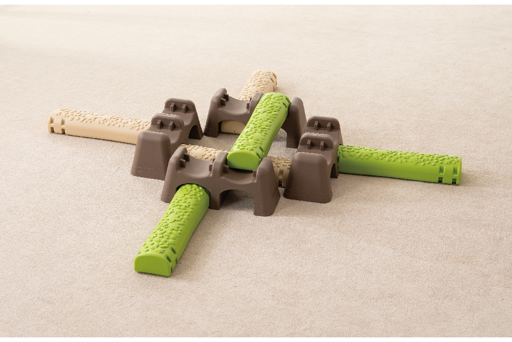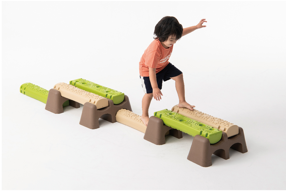 屬創新獨木橋式的平衡木,雙面平衡木〔平面/弧面〕搭配可上下卡合的底座,高低變化創造豐富的路徑擺設,