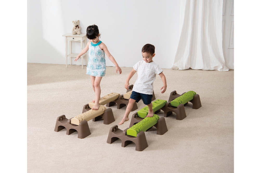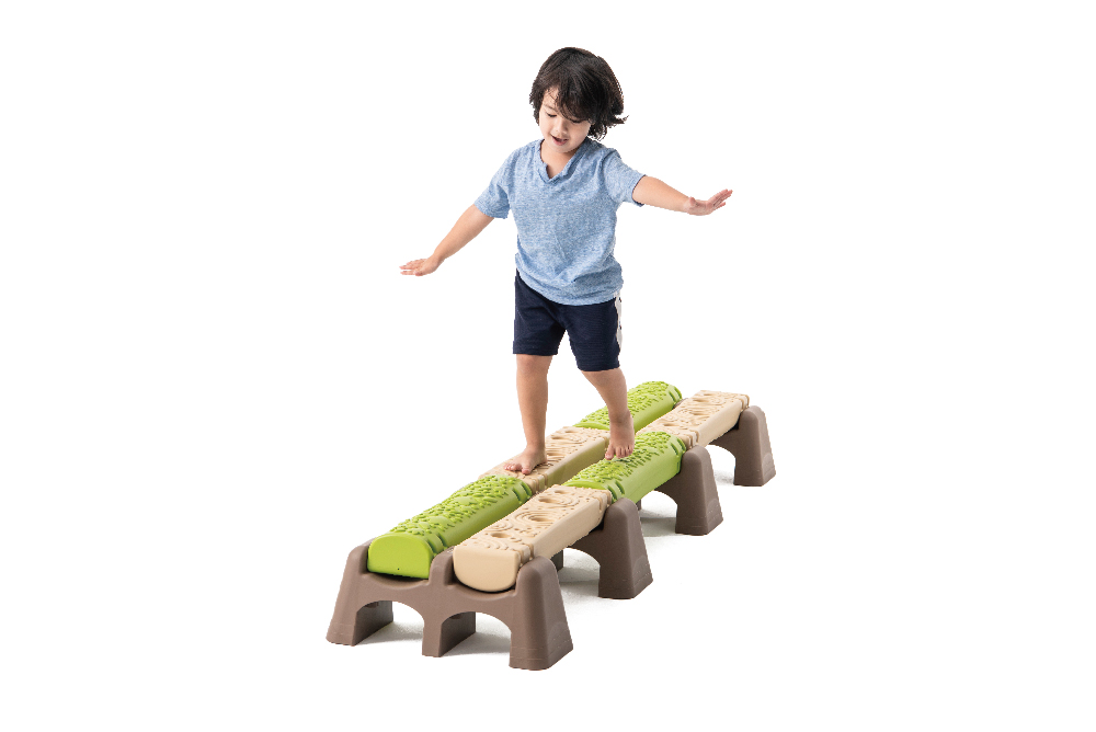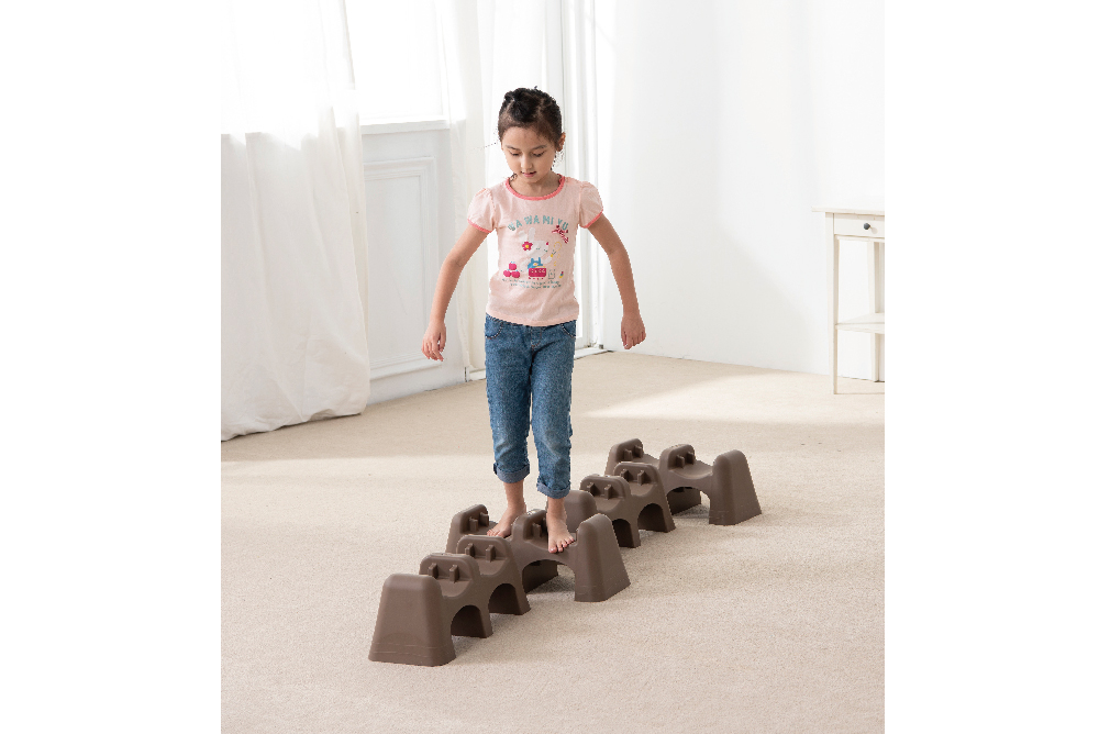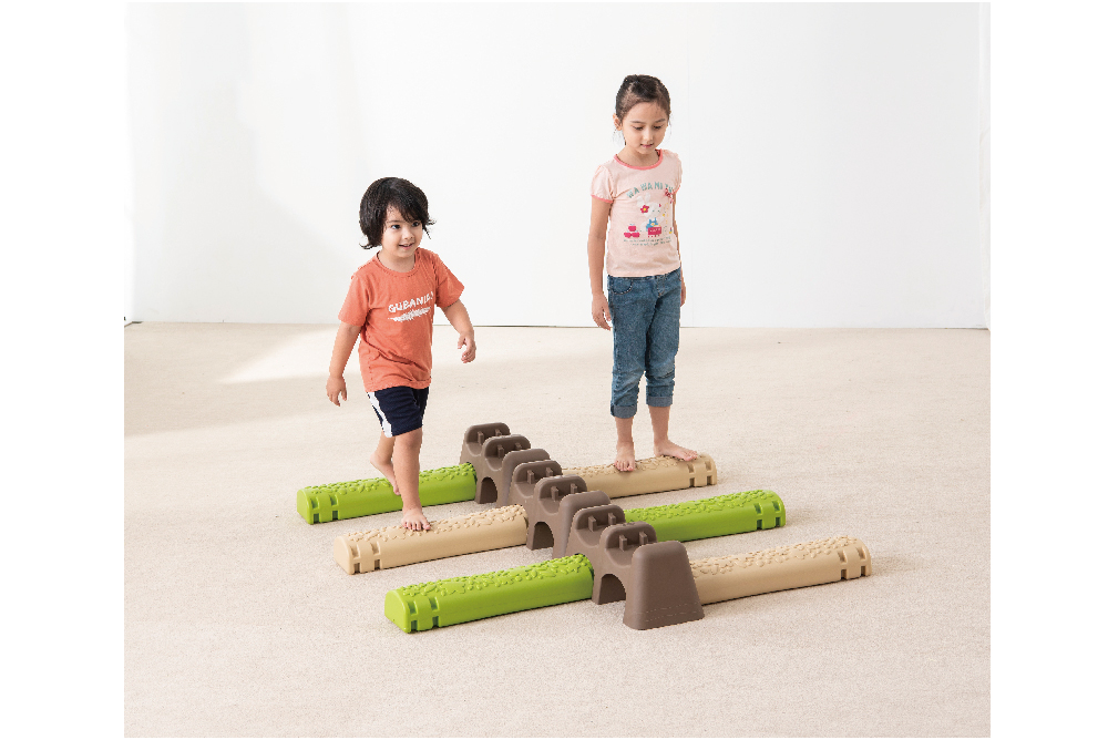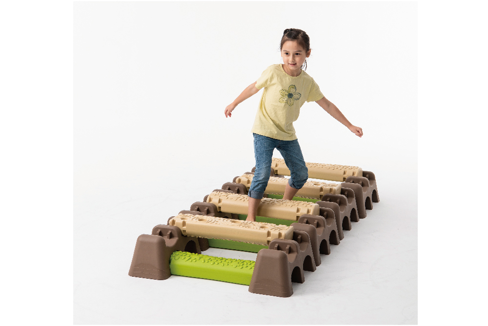 4. 同時行走在不同高度與弧面的平衡木上,練習身體雙側協調。