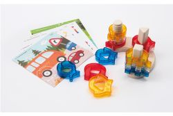 可進行動物混色的變裝遊戲,也可相互疊高挑戰創意造型,或依圖卡引導進行多元的數學概念遊戲。