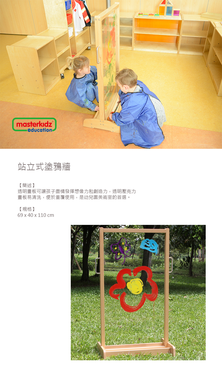 站立式塗鴉板滿足滿足教學功能的多種用途,透明畫板可讓幼兒盡情發揮想像力和創造力。