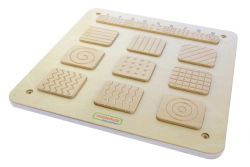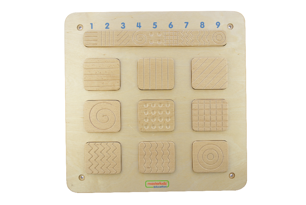 本產品由9個不同表層紋理積木組成,幼兒可以透過觸摸積木來正確識別紋理和提高幼兒去描述所觸摸物體的感覺,