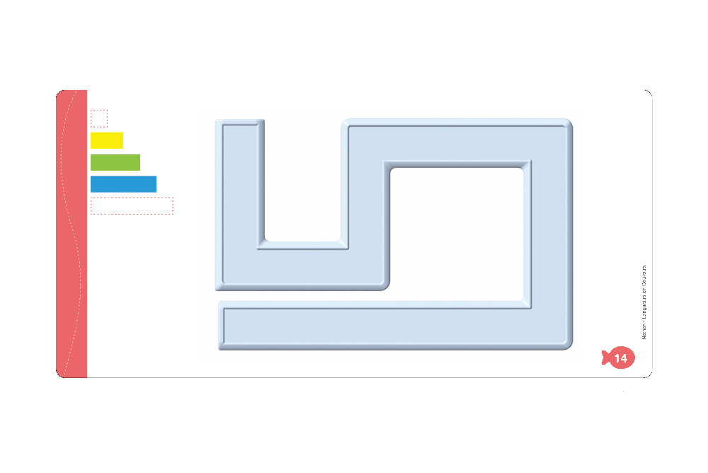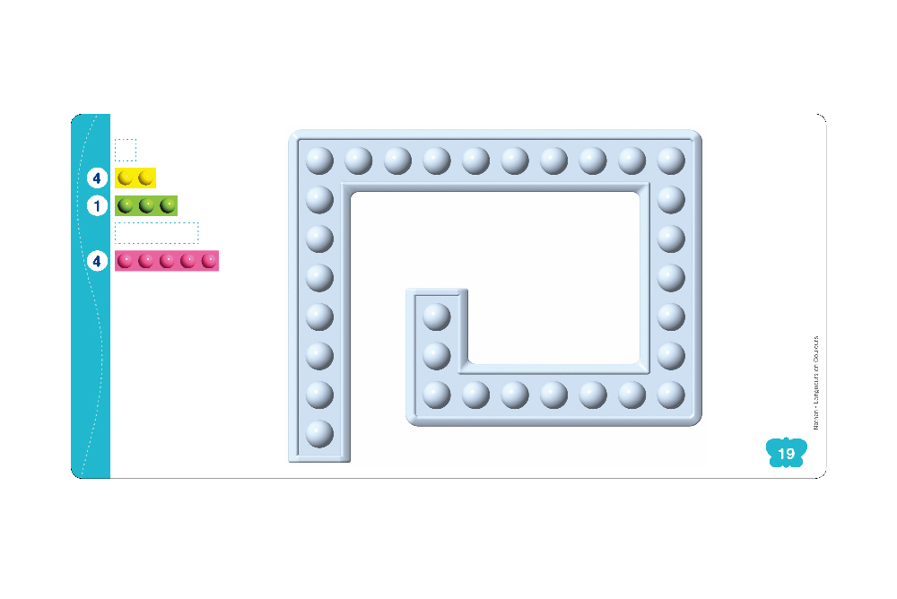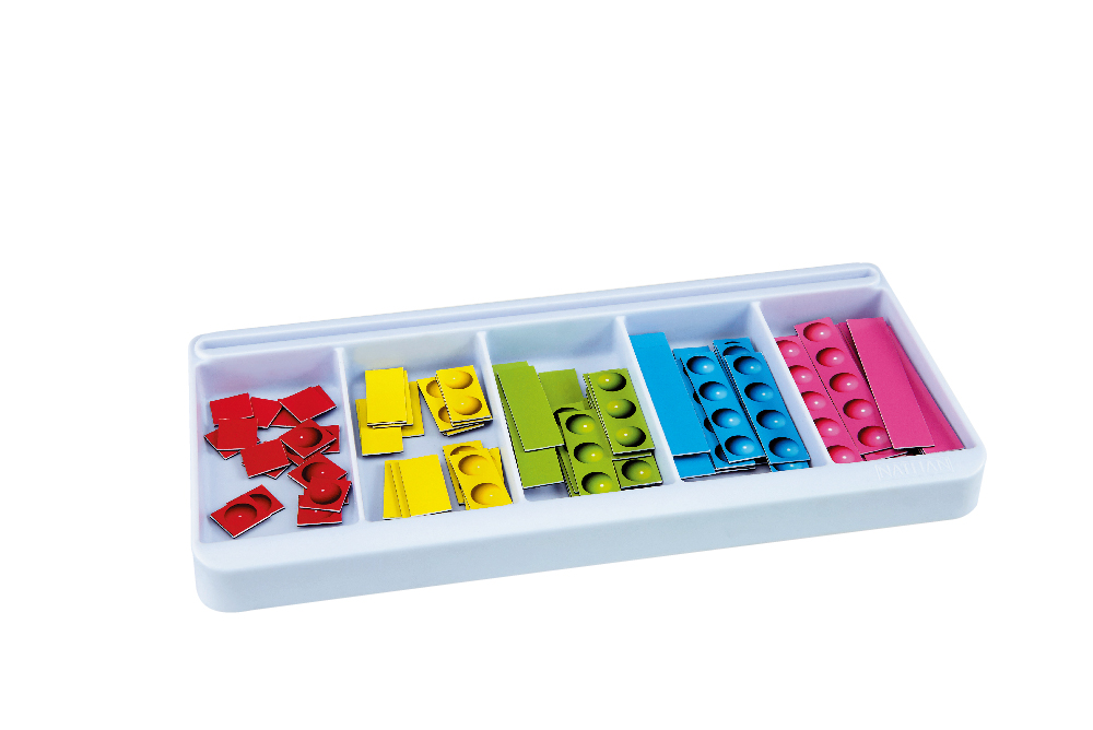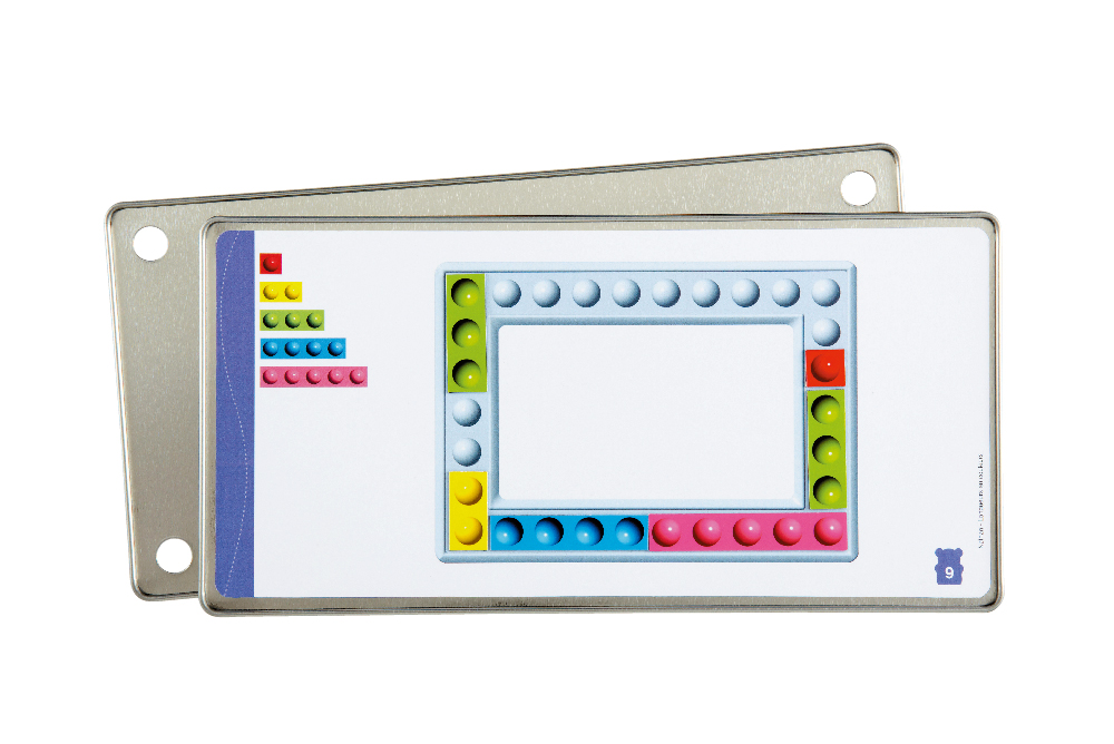 2. 五種不同顏色(長度)的磁力點點與磁力方塊,依不同的路徑填滿。