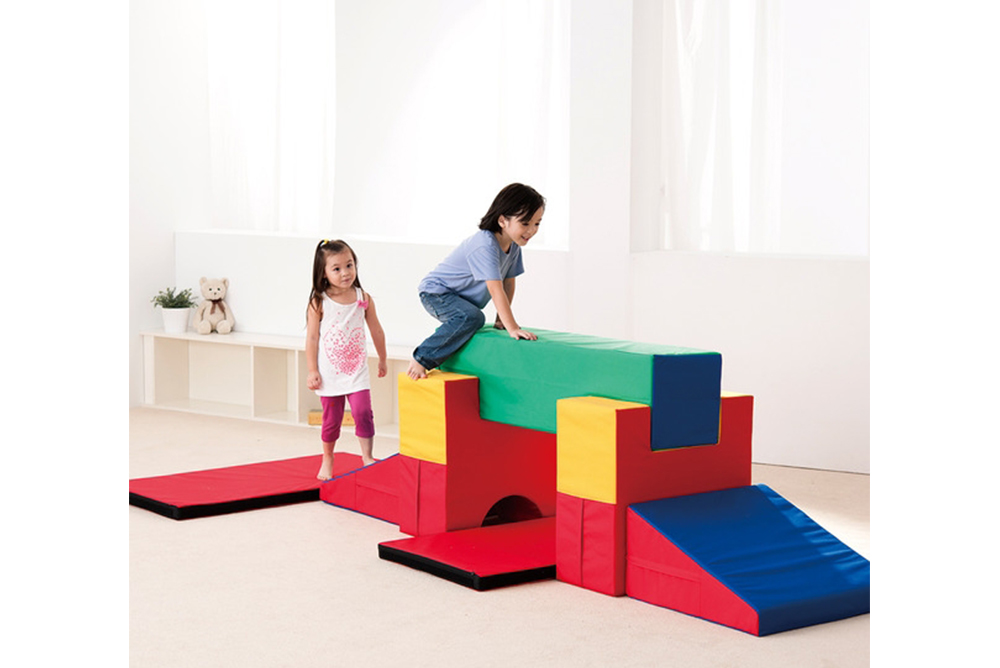 2.大型的體能遊戲組件,可自由創意組合路徑,提供孩子墊上體能活動。