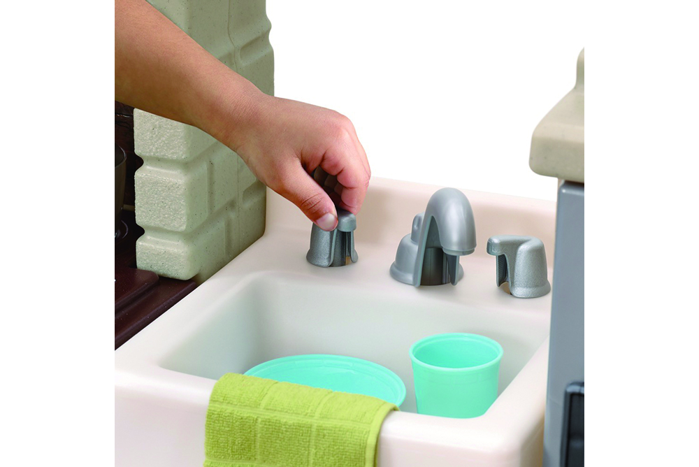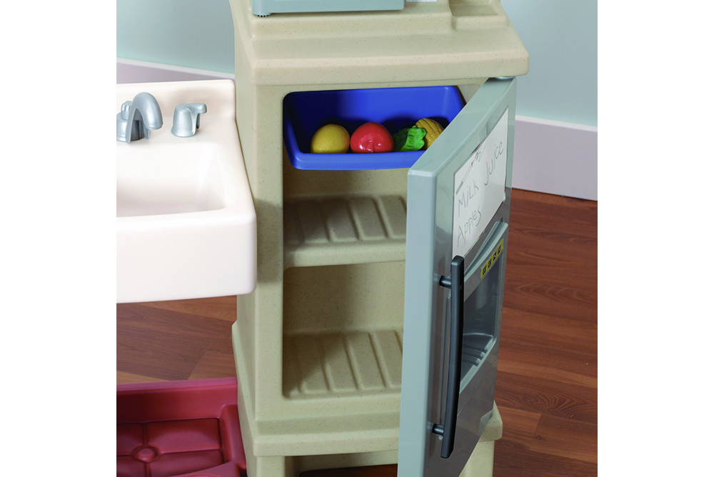 附有烤箱、瓦斯爐、水龍頭及記事板的聲光廚房。