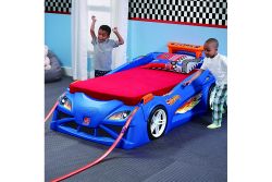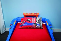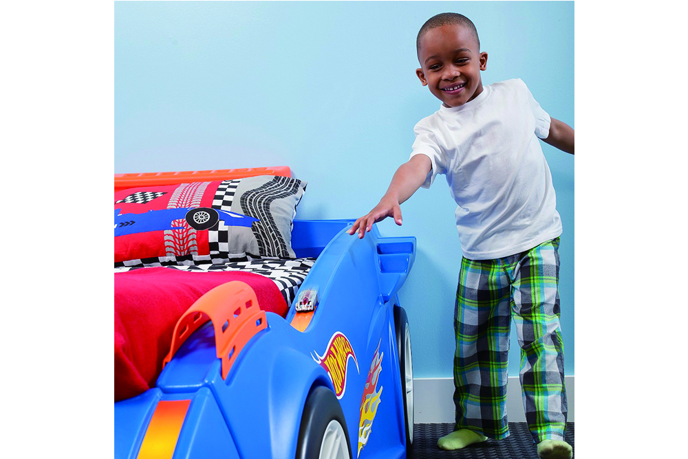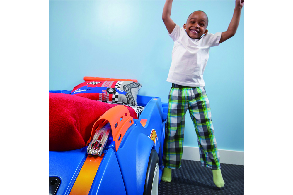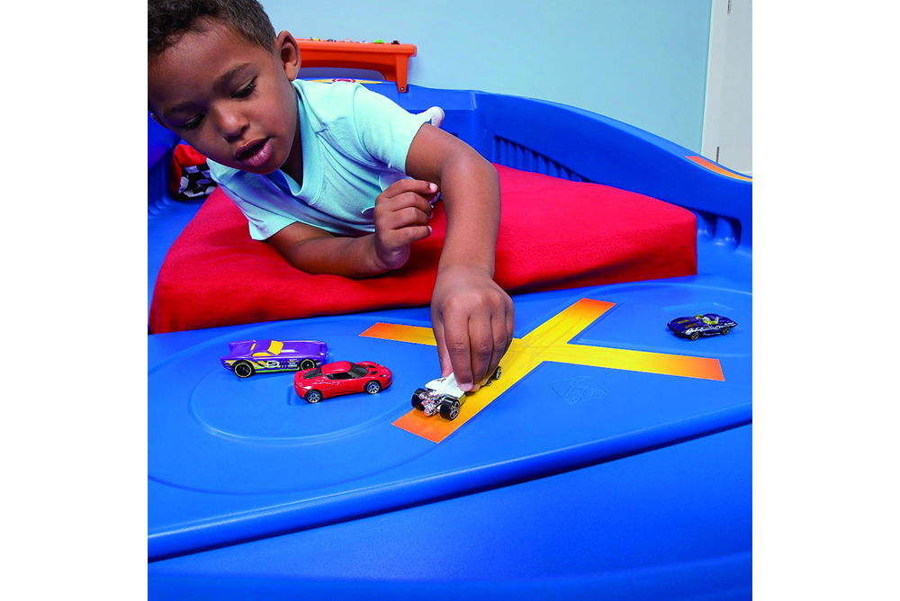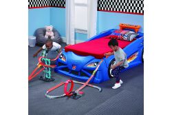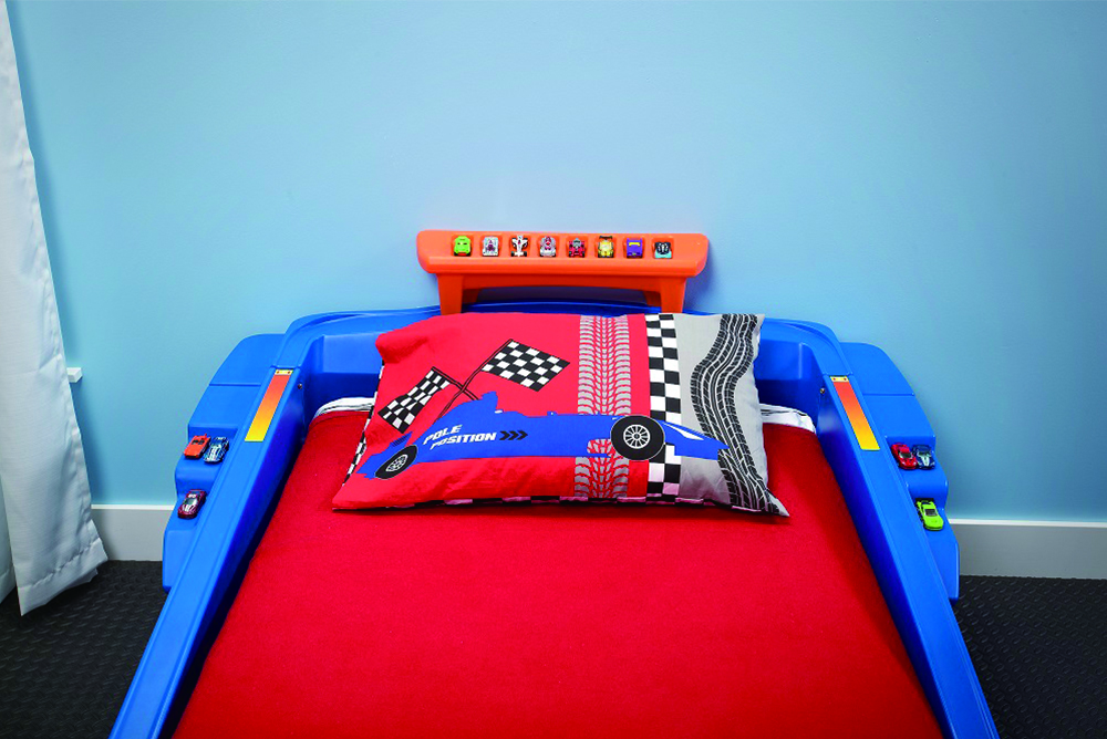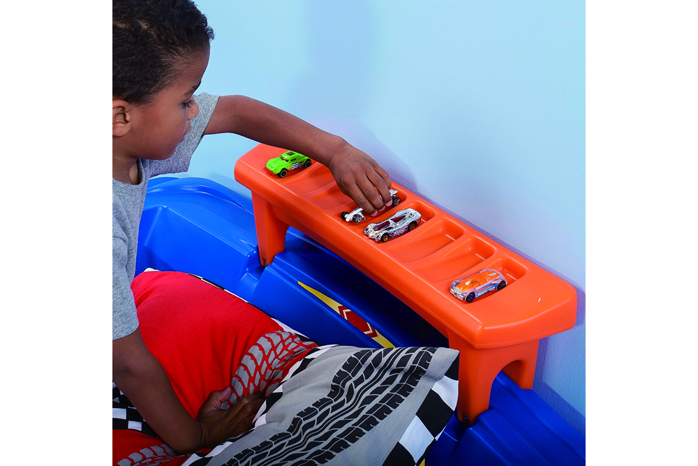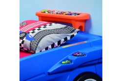 哇!兒童床的邊緣都是賽車軌道和停車場,快把孩子最愛的汽車通通擺出來,奔馳、比賽、扮演、想像,