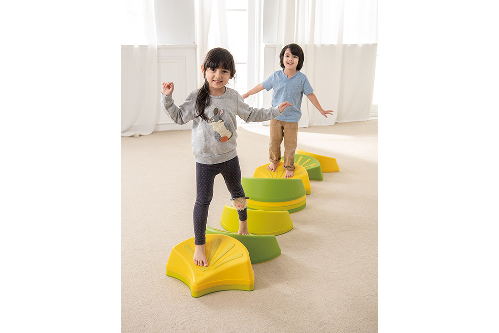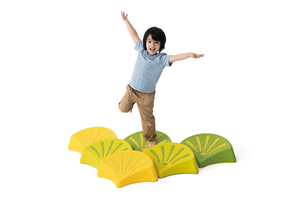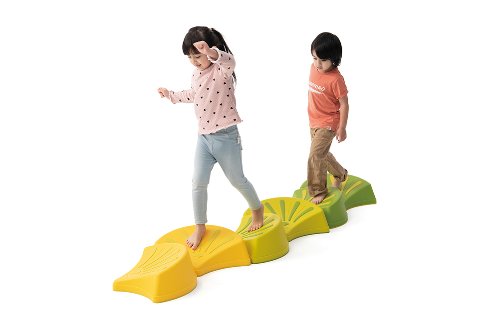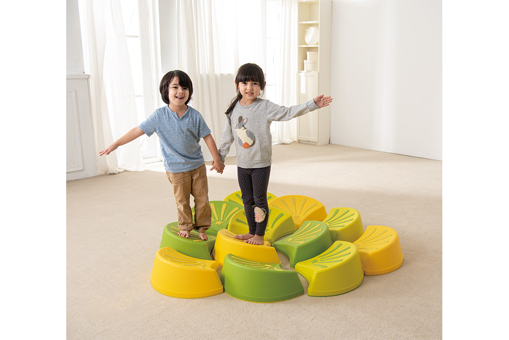 1.獨特斜凹面設計的花瓣岩,細窄到寬闊的踩踏面積,是動作協調與平衡遊戲的全新體驗。