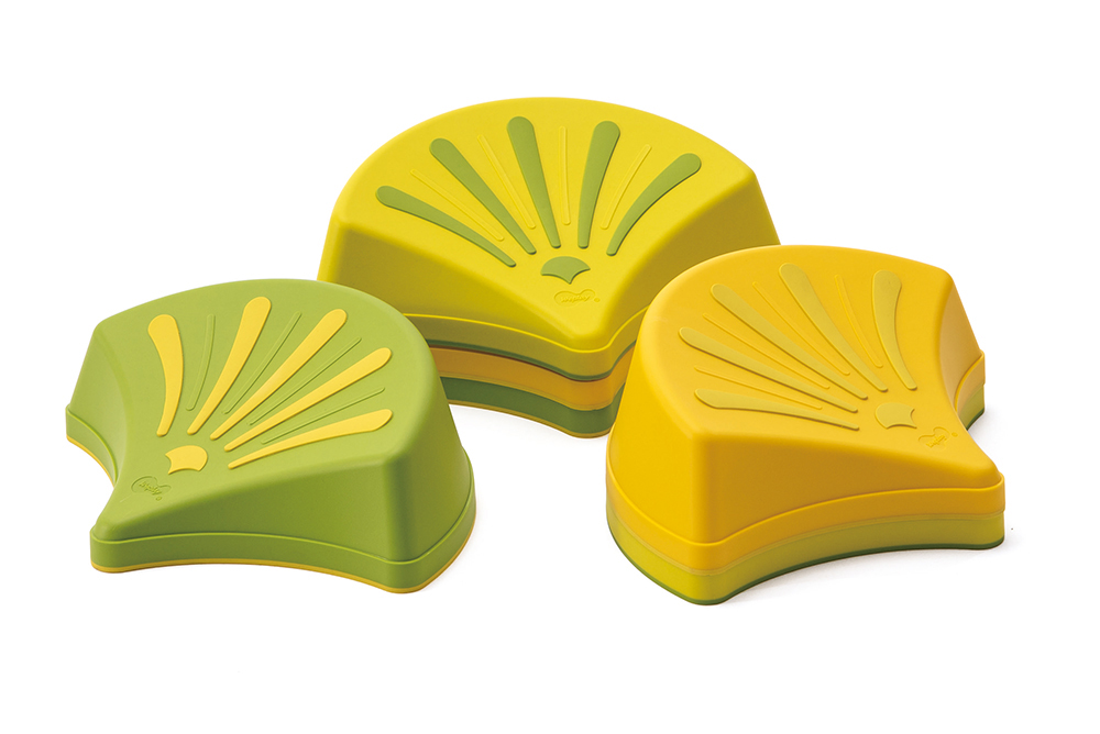 獨特斜面的立體花瓣造型,融入季節變換的色彩,每個花瓣岩設計了細窄到寬闊的踩踏面積差異,6個一組,