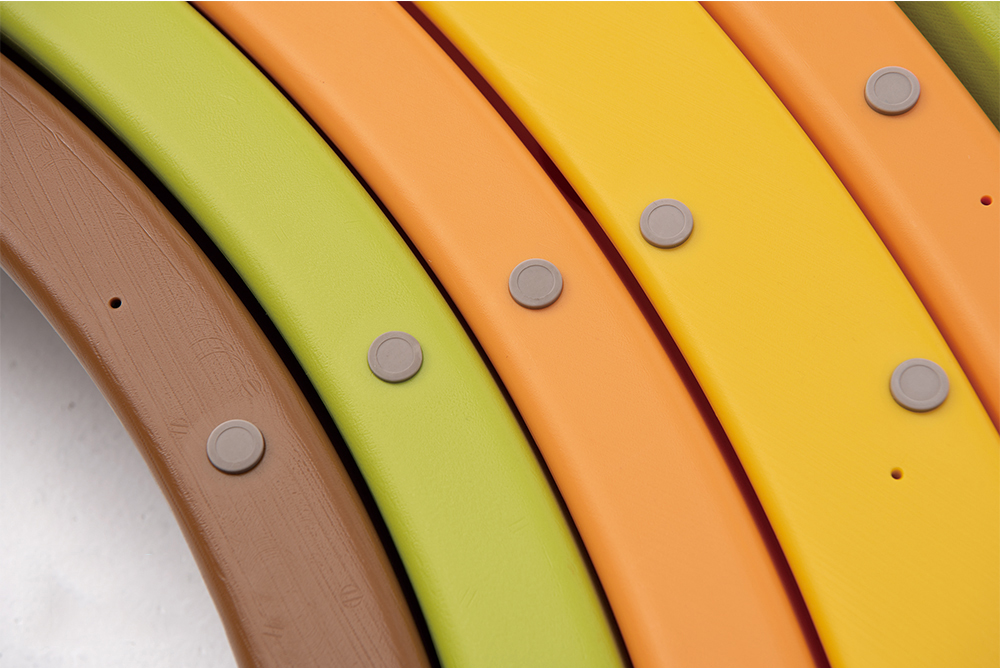 2. 四色步道順著弧形可擺放成一個圓;換個方向就能組合波浪、轉彎…等豐富路徑造型。