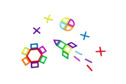 1. 色彩繽紛的半透明幾何積木,每個積木有兩個彩度不同的顏色,讓孩子可以組合成豐富多彩造型。