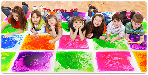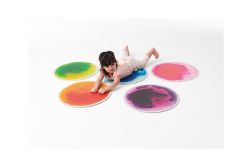 新奇的六色彩虹地墊,可任意變化排列與路徑,踩踏中感受液體流動與色彩變化,適合爬行或學步的小寶寶,