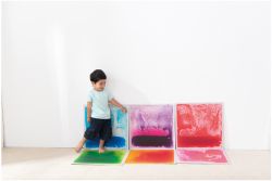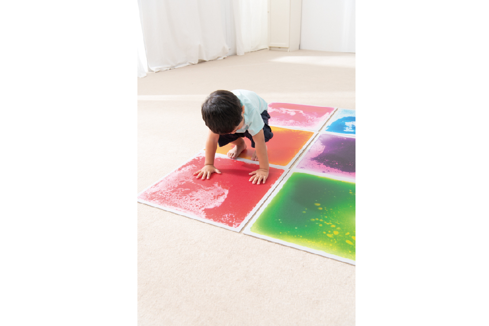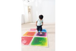 新奇的六色彩虹地墊,可任意變化排列與路徑,踩踏中感受液體流動與色彩變化,適合爬行或學步的小寶寶,