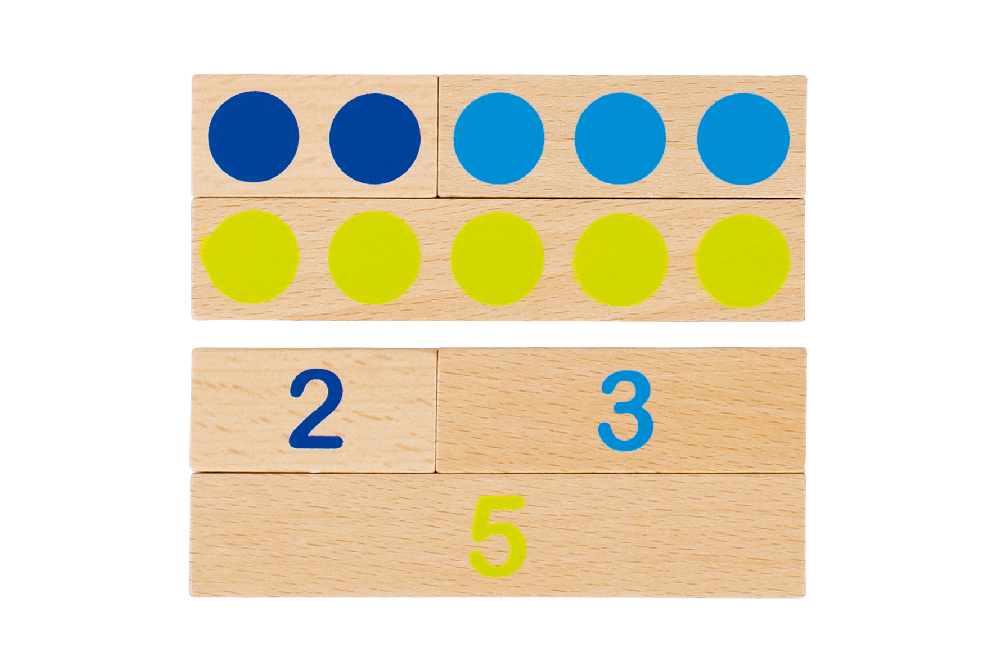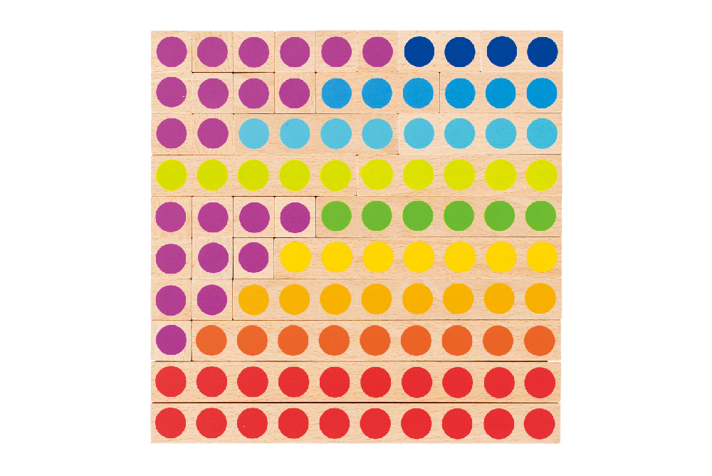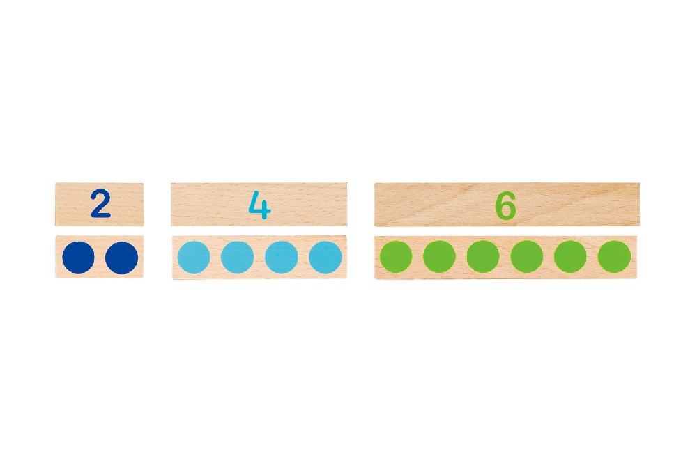 2. 數數板依長度比例切割,在排列中引導孩子發現數字的大小及排序,也可以作為非標準化的測量工具使用。