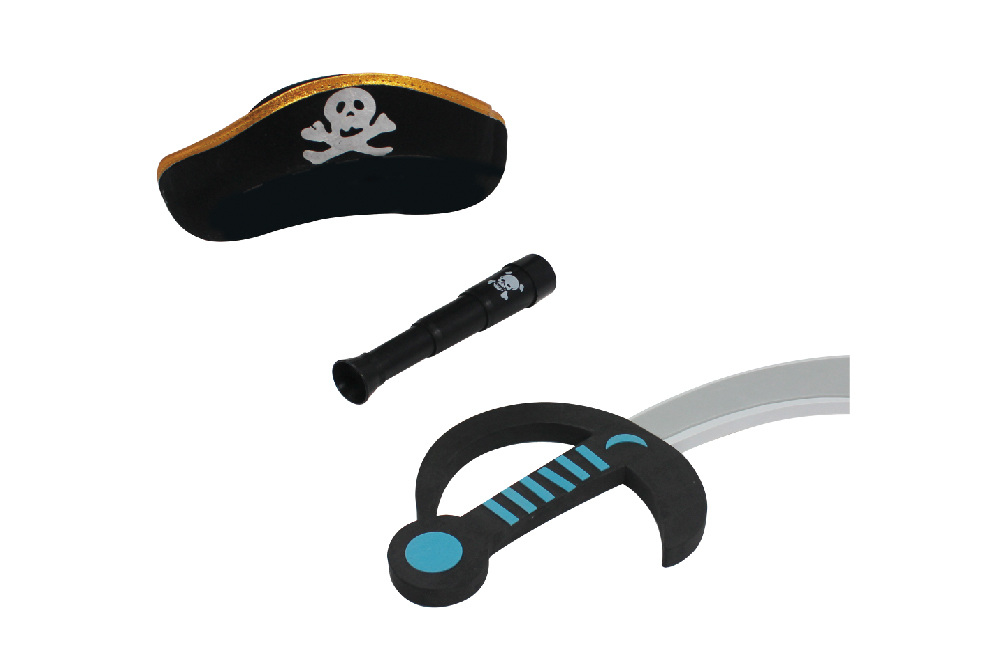 3. 附望遠鏡、彎刀、海盜帽,增加扮演氣氛,幫助孩子融入角色情境中。