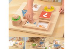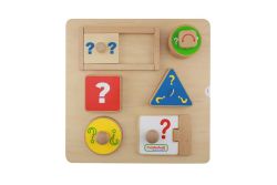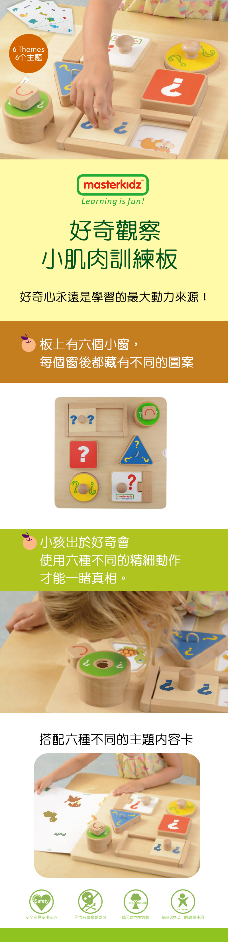 板上有六個小窗,每個窗後都藏有不同的圖案,小孩出於好奇會使用六種不同的精細動作才能一賭真相。